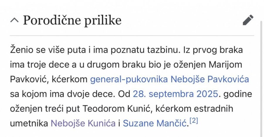 Ono što je zanimljivo jeste da Teodora nije Talijanova druga supruga. Naime, on je pre Marije imao još jedan brak. Kako stoji na njegovoj stranici na Vikipediji, u prvom braku dobio je troje dece, a u drugom s Marijom dvoje. Inače, na društvenim mrežama se pojavila informacija da je Teodora trudna, a Suzana Mančić je ovo demantovala za naš portal.