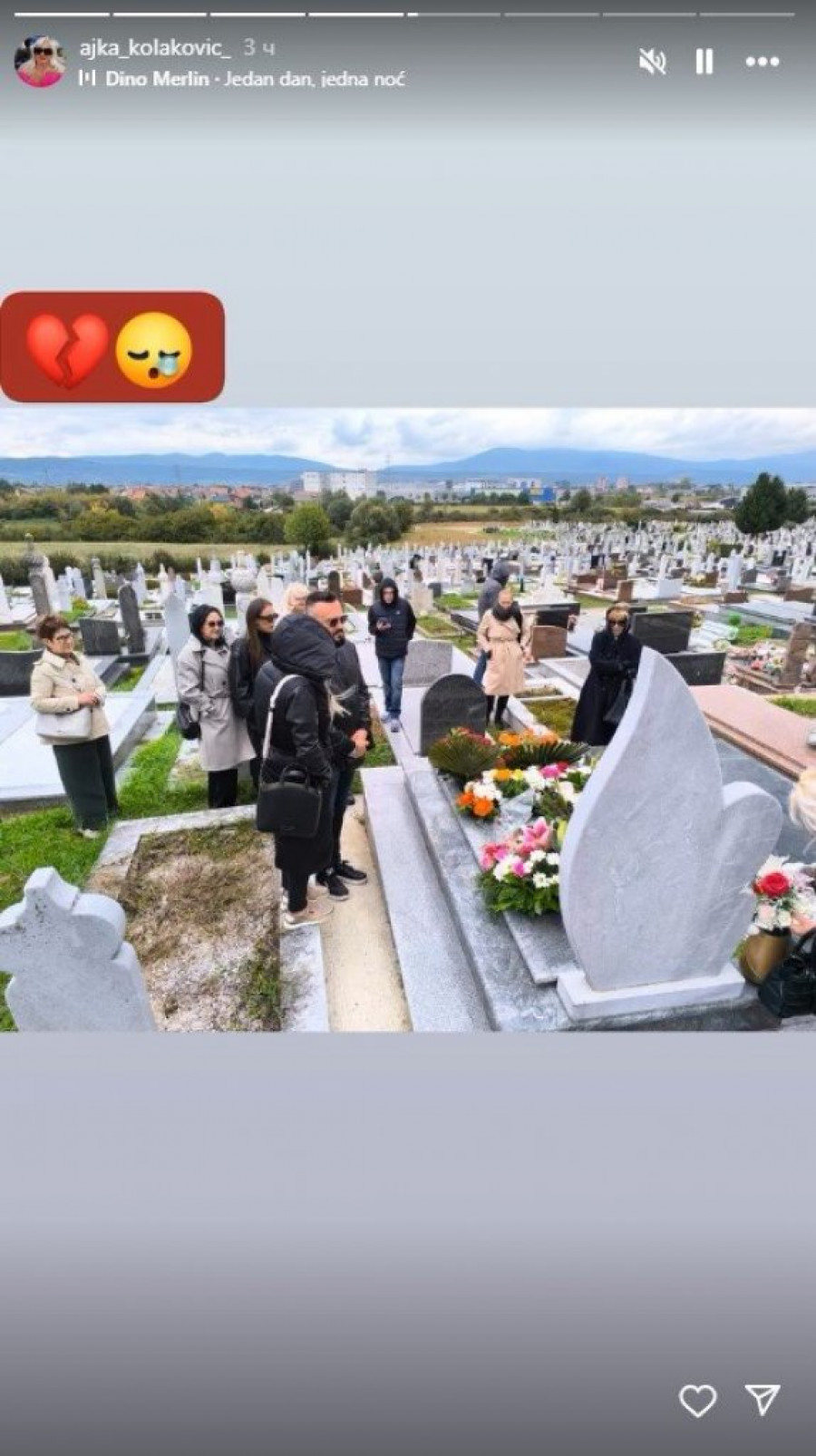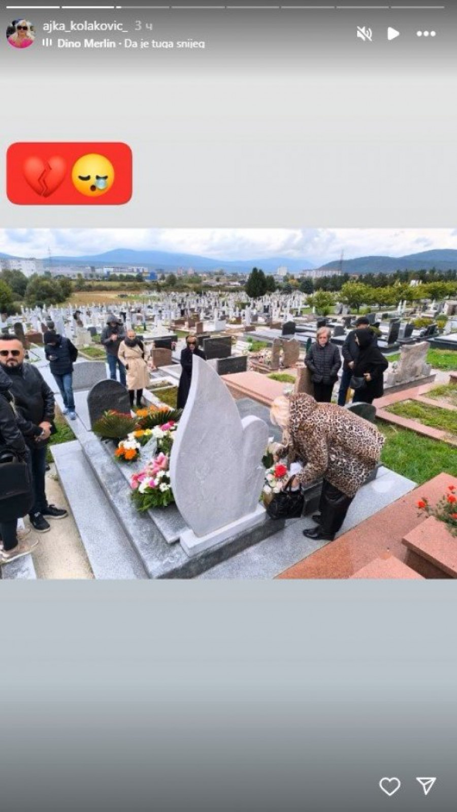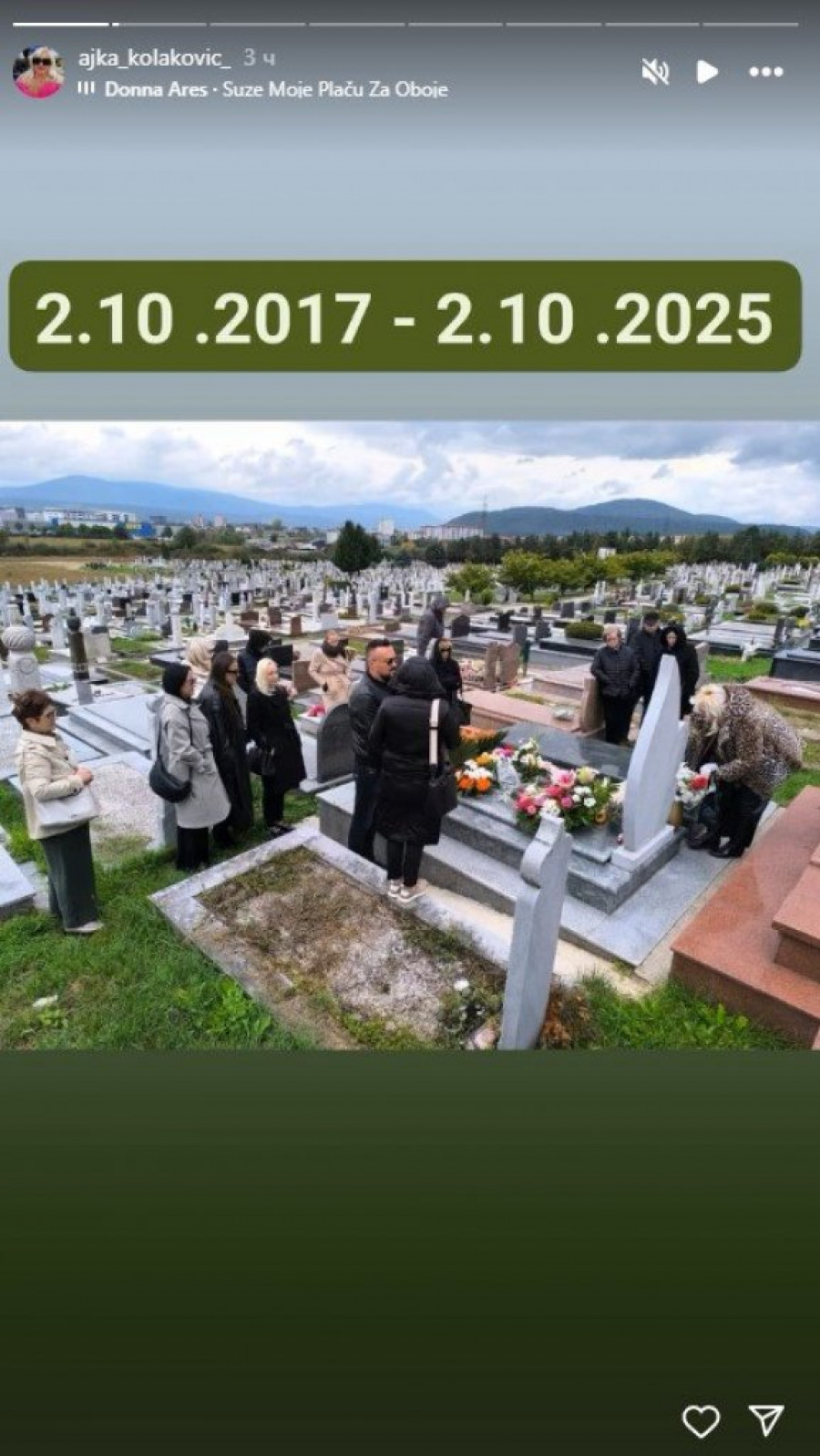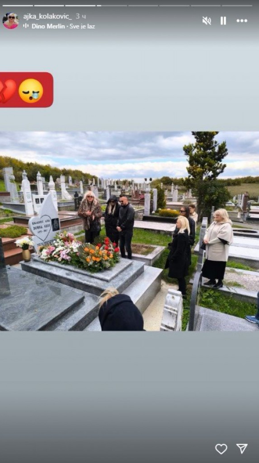 Na godišnjicu smrti, majka pevačice, Ajka Kolaković, podelila je emotivne trenutke na Instagramu, okačivši niz fotografija sa groblja. Na slici koja je posebno potresla sve, vidi se kako Ajka ljubi spomenik svoje ćerke i briše suze sa lica.