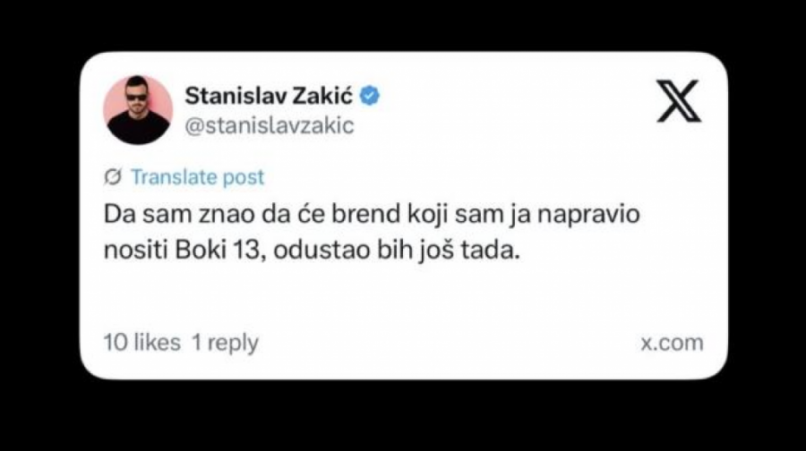 - Da sam znao da će brend koji sam ja napravio nositi Boki 13, odustao bih još tada! - napisao je Zakić.