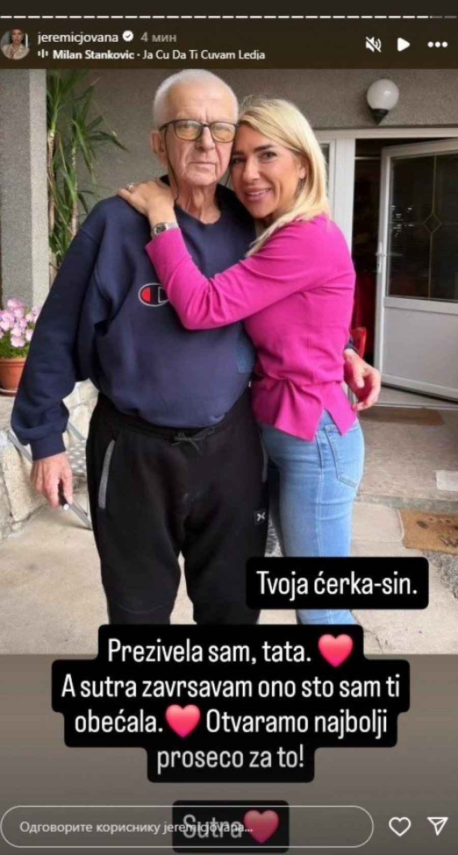 - Tvoja ćerka-sin. Preživela sam, tata. A sutra završavam ono što sam ti obećala. Otvaramo najbolji prosecco za to. Sutra – napisala je Jovana.