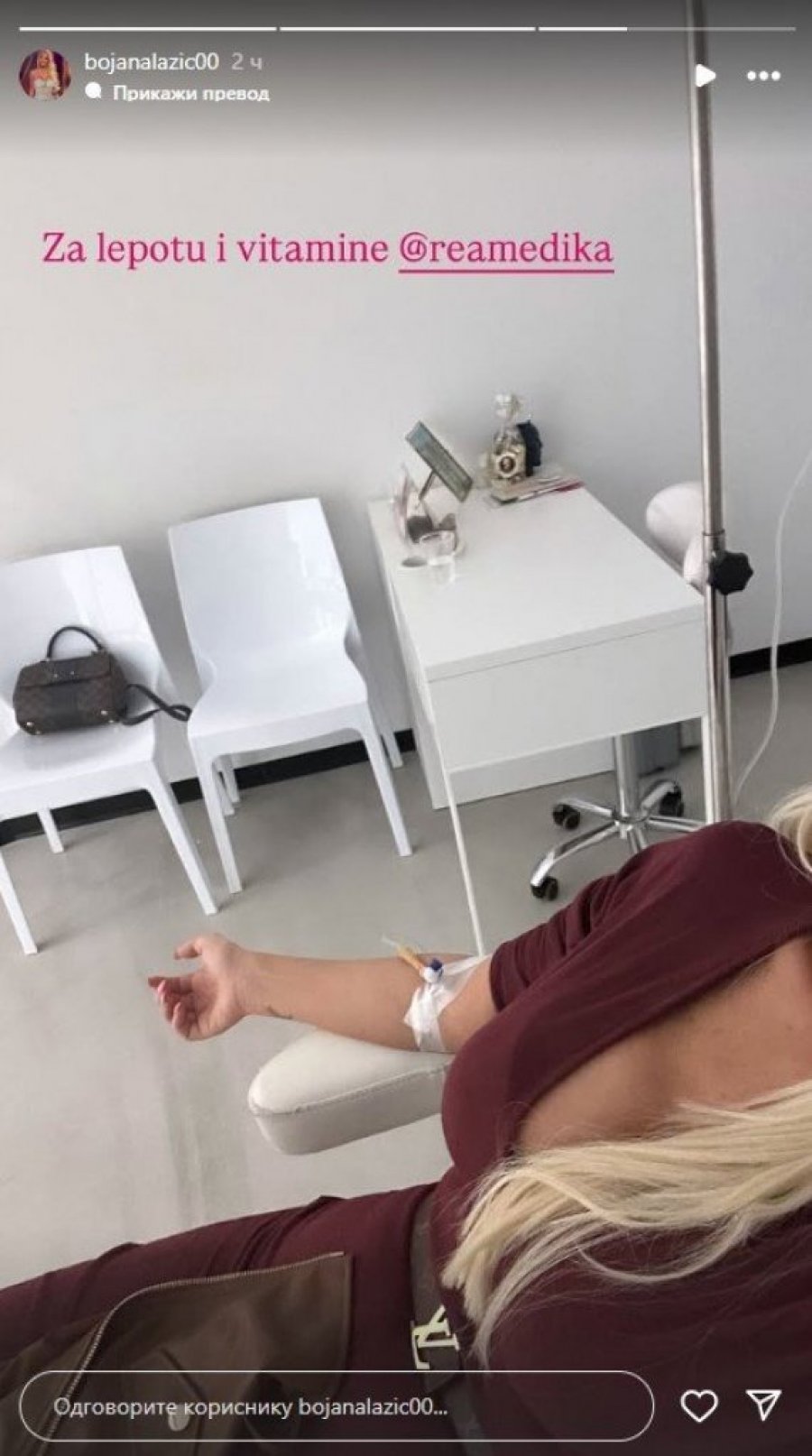 Voditeljka Bojana Lazić zabrinula je svoje pratioce kada je na društvenim mrežama objavila fotografiju na kojoj leži u krevetu, priključena na infuziju. Poznata po svom vedrom duhu i iskrenom odnosu prema javnosti, Bojana je uz fotografiju dodala šaljiv opis: