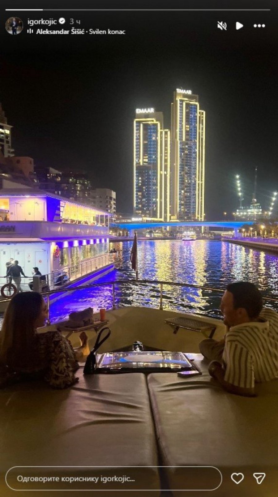 Sin Dragana Kojića Kebe, Igor Kojić, otputovao je na romantično putovanje sa svojom novom devojkom, atraktivnom brinetom. Par je pozirao na luksuznoj jahti, dok se u pozadini pružao impresivan pogled na grad. Igor i njegova izabranica bili su zagledani jedno u drugo, nasmejani i vidno zaljubljeni.