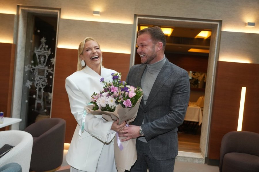 Za ovu priliku Nataša je odabrala elegantno belo odelo, a Stanivuković ju je dočekao u maniru pravog džentlmena - uz poljubac ruke, naklon i buket cveća. Ovakav gest pevačicu je vidno obradovao, pa osmeh nije skidala sa lica, baš kao ni njen domaćin. Bekvalčeva je potom dala izjavu za medije o "najluđoj noći".