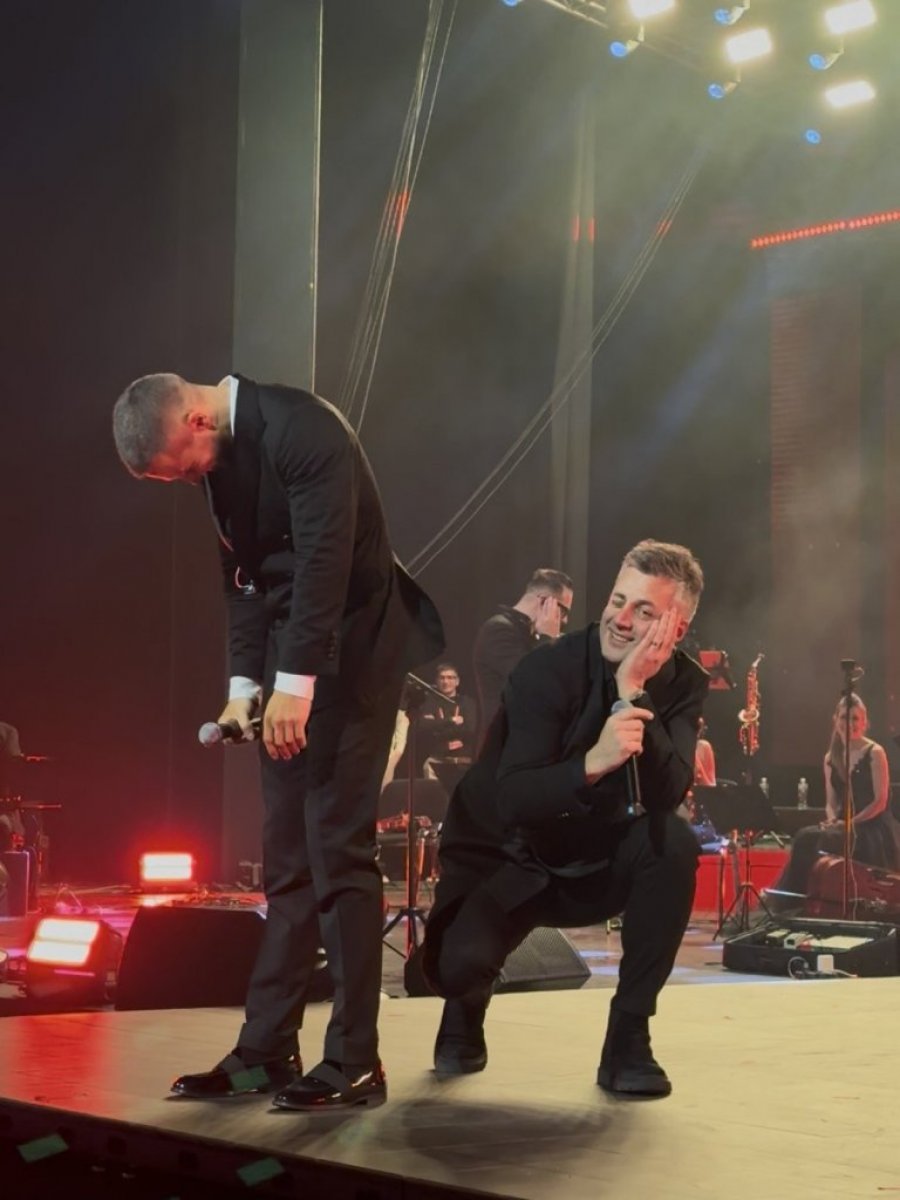 Međutim, ono što je usledilo na sceni izazvalo je pravu pometnju među prisutnima. Bojan Vasković, poznat po svojoj duhovitosti, odlučio je da priredi iznenađenje svom kolegi Saši. Naime, dok je Saša započinjao koncert i najavljivao Bojana kao svog prvog gosta, Vasković se već nalazio na bini, skrivajući se iza Saše. Ovaj neobičan trenutak izazvao je trenutak tišine u publici, jer je Bojan gestikulirao da ne reaguju dok se polako približavao Saši.