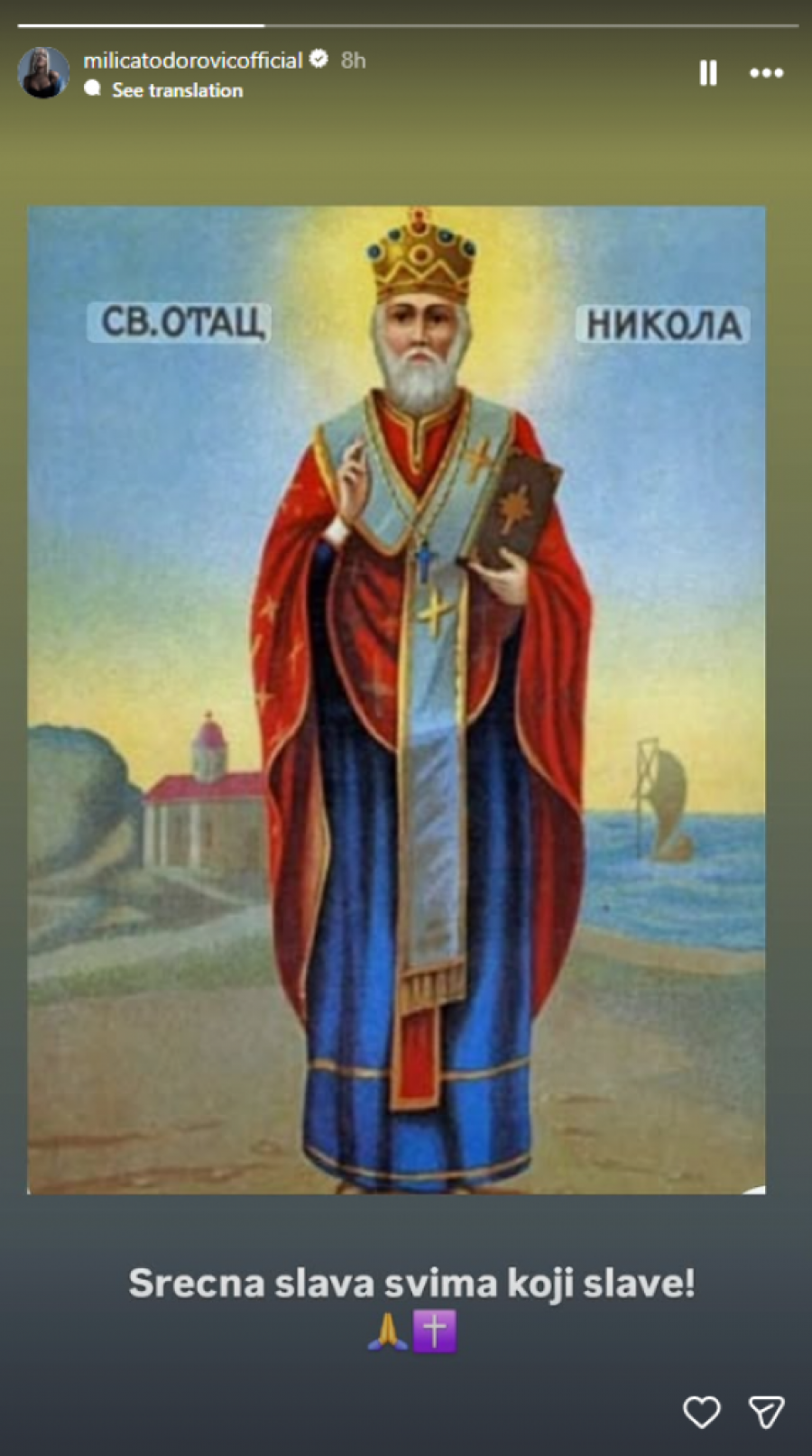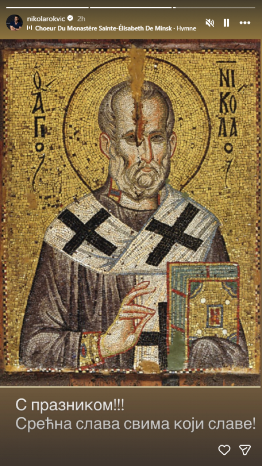 Na svojim društvenim mrežama, sa fanovima su podelili slike ambijenta, enterijera, dekoracije i ujedno čestitali Svetog Nikolu sledeće javne ličnosti: Nenad Marinković Gastoz, Edita, Milan Vasić, Aleksandra Mladenović, Milica Todorović.