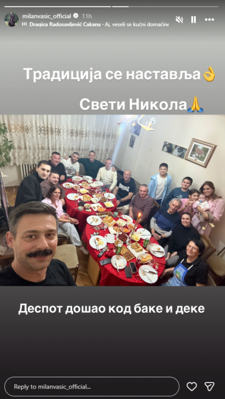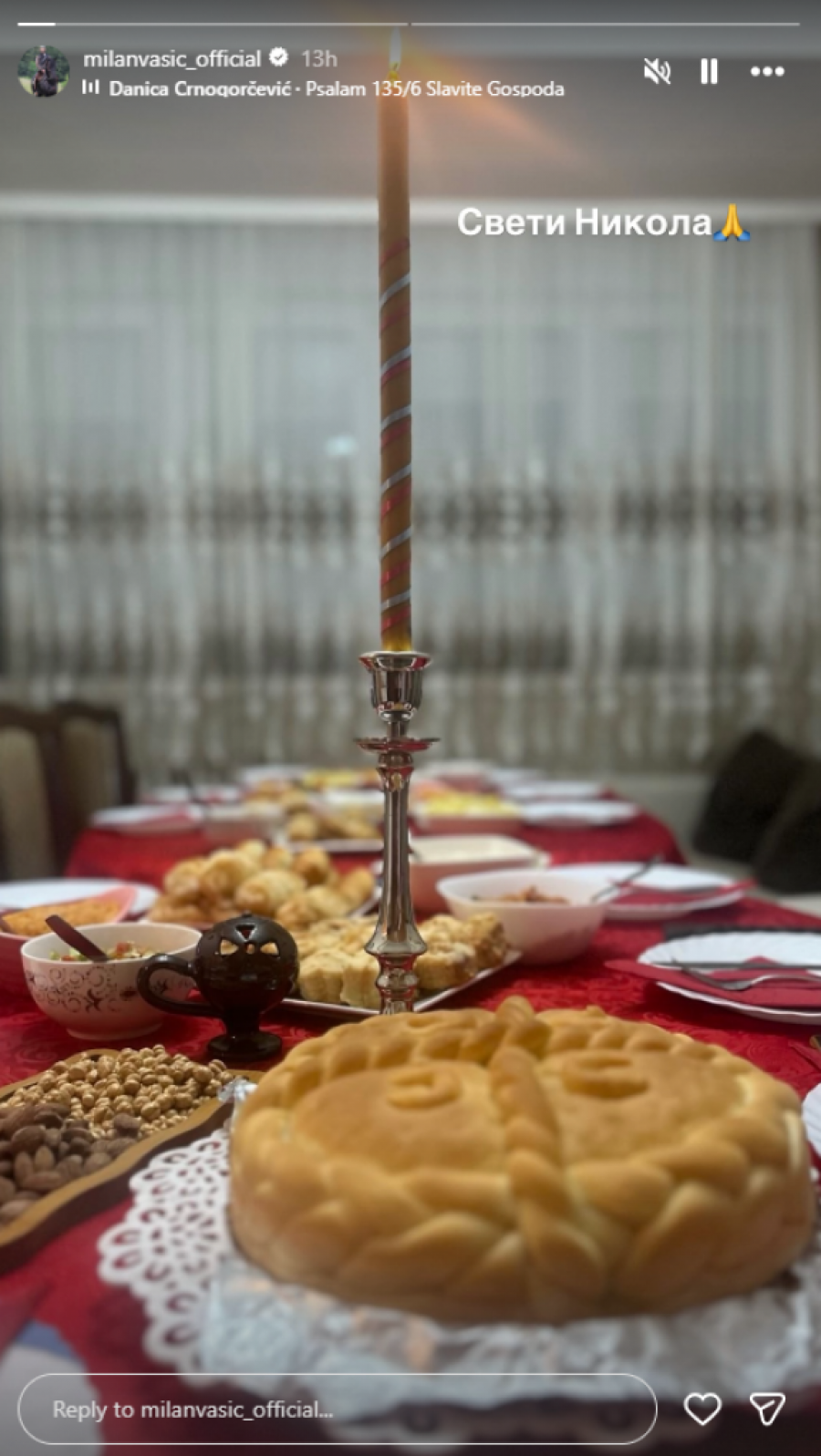 Još jedan pripadnik estrade koji često javno ističe značaj porodice, tradicije i vere jeste pevač Sloba Radanović, koji takođe slavi Svetog Nikolu. U njegovom domu sve je već spremno za goste, a delić atmosfere podelila je njegova supruga Jelena putem društvenih mreža.