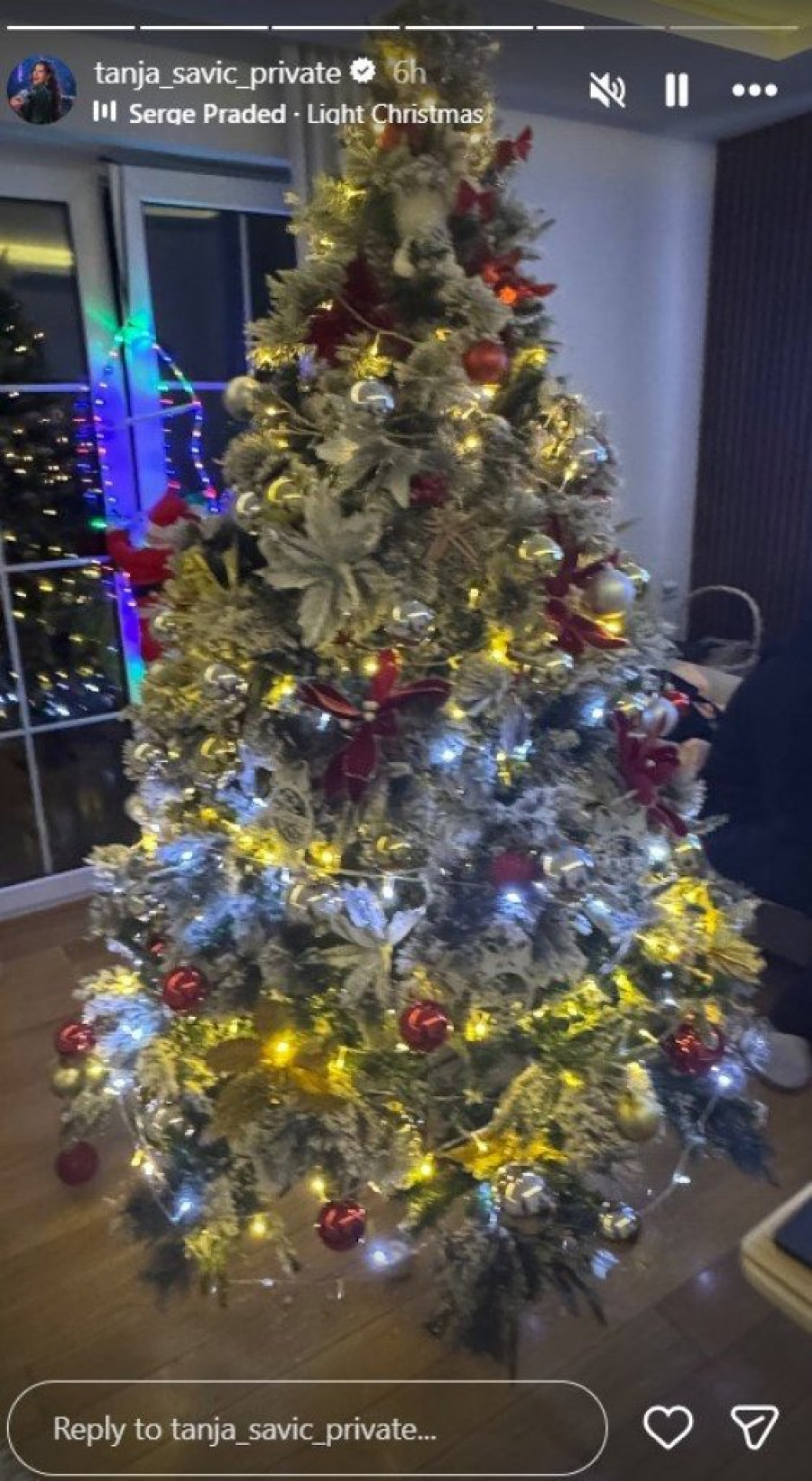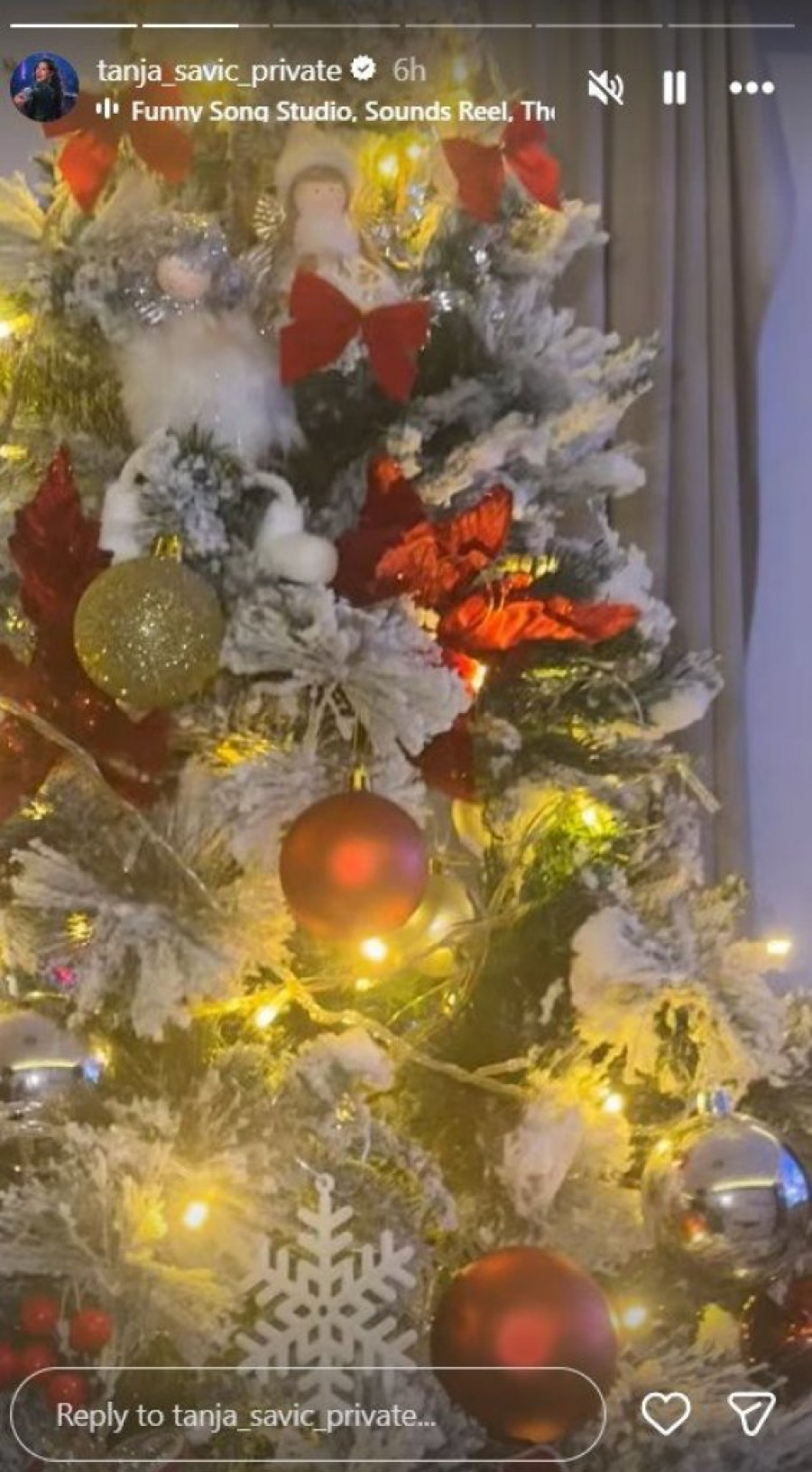 Tanja Savić je svoj dom ukrasila jelkom koja se pruža do plafona, a njen raskošni izgled oduzeo je dah mnogima. Na jelki se nalazi mnoštvo lampica, cvetova i raznih ukrasa, uključujući i Deda Mrazića, što je dodatno doprinelo čarobnoj atmosferi. Ovaj detalj nije samo estetski privlačan, već i simboličan, jer predstavlja radost i veselje koje praznici donose. Čim se pogleda, jasno je da je Tanja uložila mnogo truda i kreativnosti u ukrašavanje svog doma.