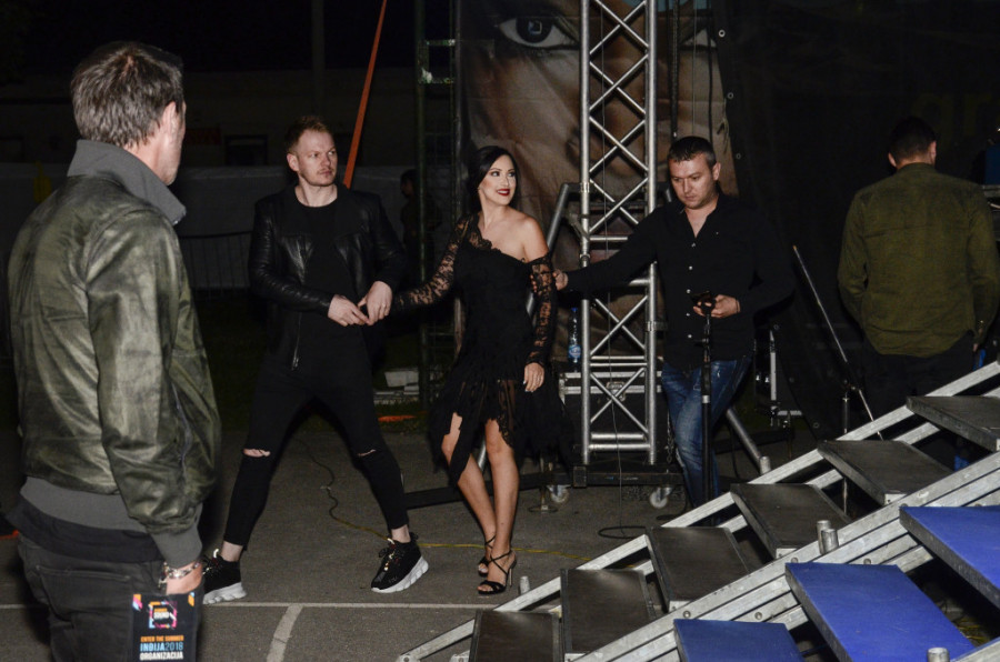 Foto: ST/N. MANDIĆJedan za jednu, drugi za drugu ruku, Aleksandru su vodili šminker i menadžer do bine gde je nastupila nakon Stefana Živojinovića i Nataše Bekvalac, dok je Filip sve to posmatrao iz publike.