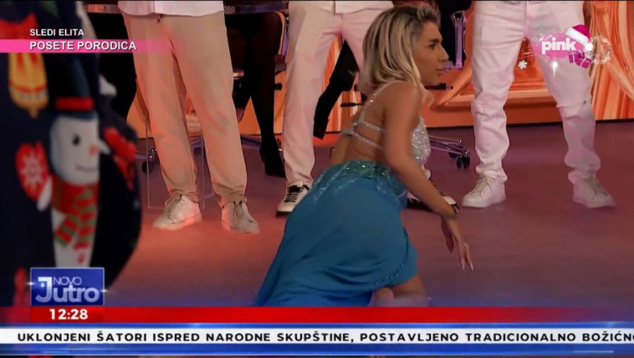 Uz zvuke trubačkog orkestra koji je svirao splet, Jovana se vešto uvijala i pokazala da su časovi plesa dali rezultate. Voditeljka je u jednom trenutku pomerila kostim i sevnula joj je zadnjica u programu uživo.