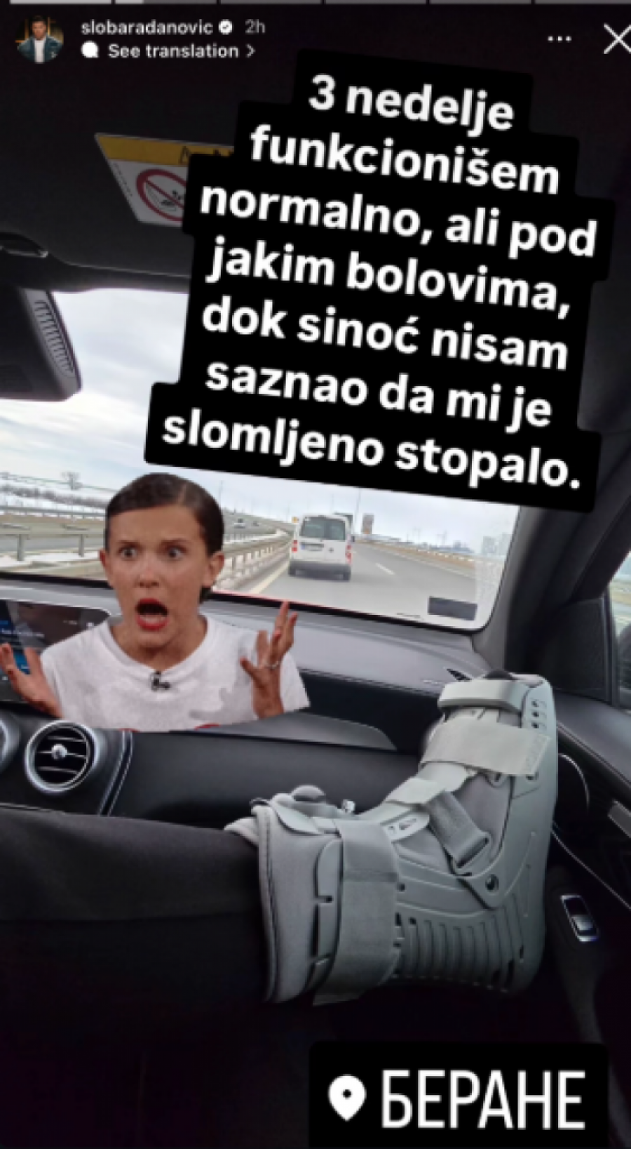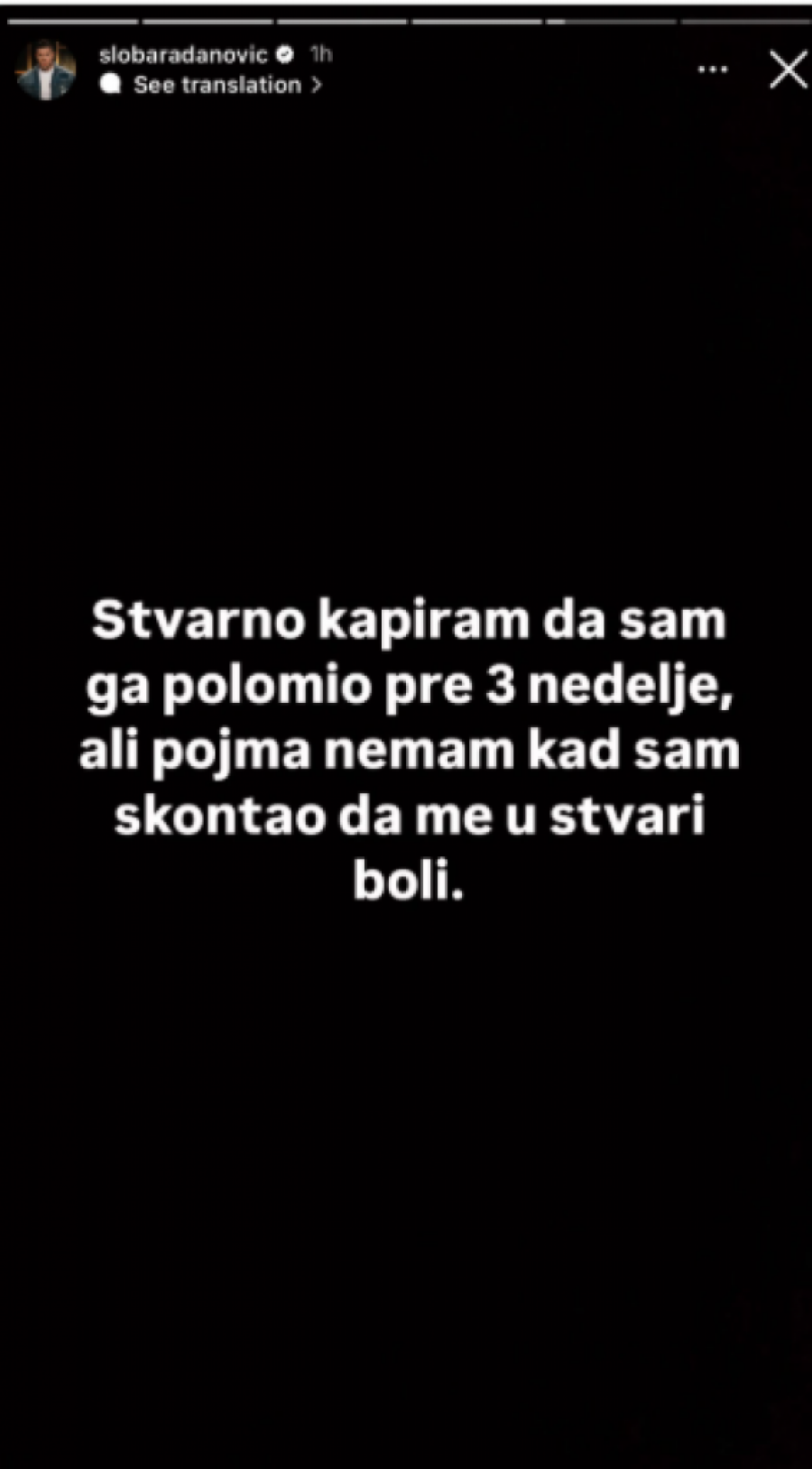 - Tri nedelje funkcionišem normalno, ali pod jakim bolovima, dok sinoć nisam saznao da mi je slomljeno stopalo, a ne sećam se ni kad ni kako sam ga slomio - napisao je Sloba Radanović, pa dodao: