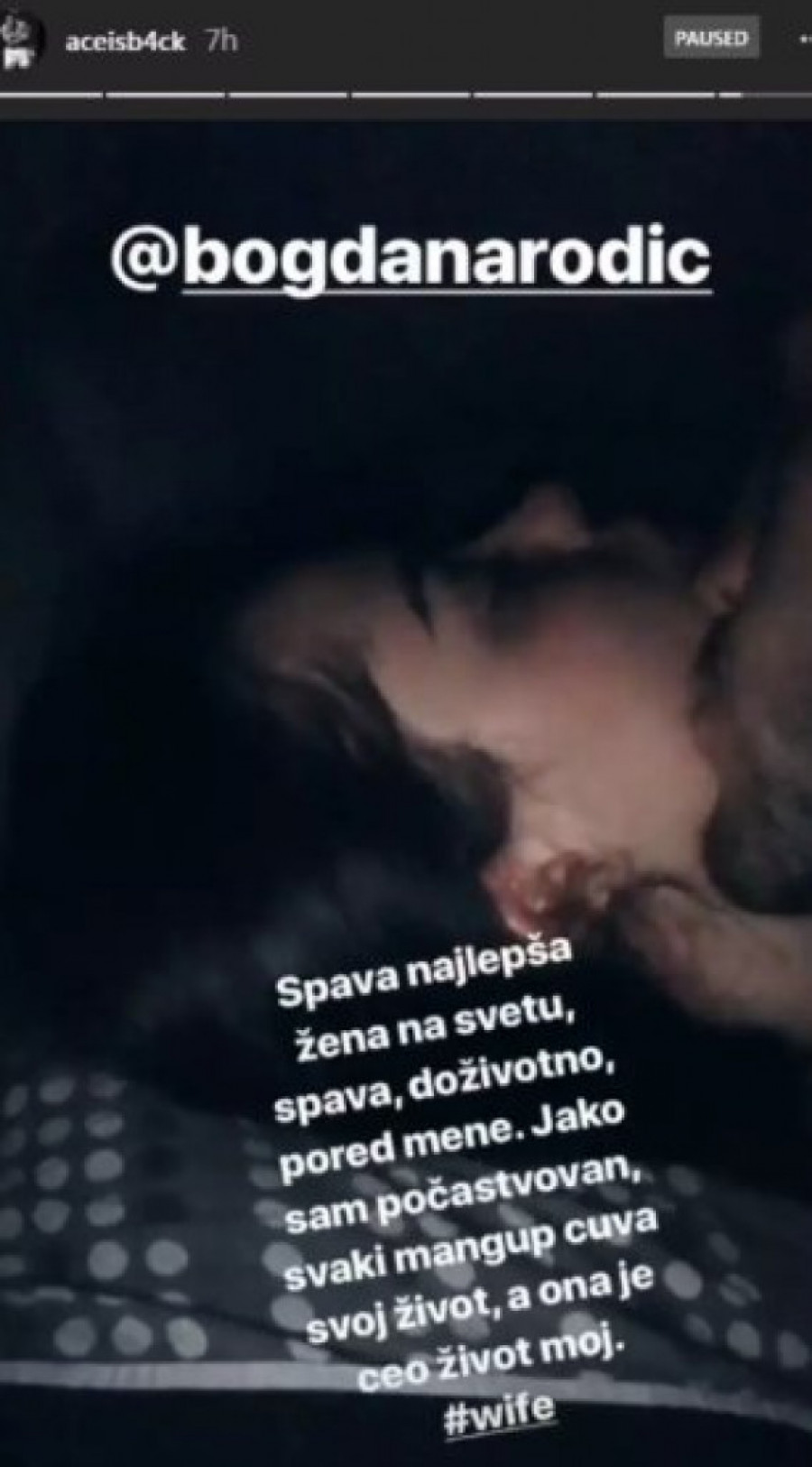 Foto: printscreen/instagram- Spava najlepša žena na svetu, spava, doživotno, pored mene. Jako sam počastvovan, svaki mangup čuva svoj život, a ona je ceo život moj - napisao je Veljko.