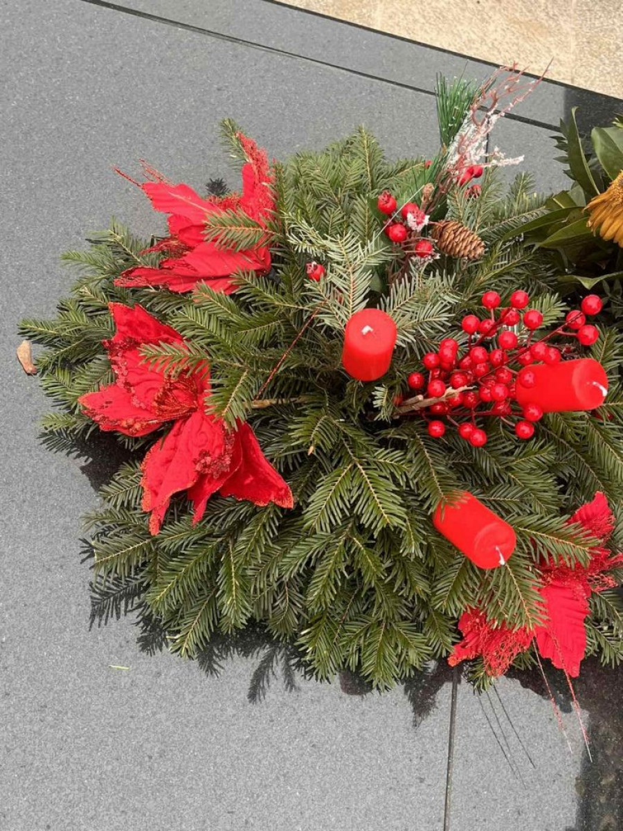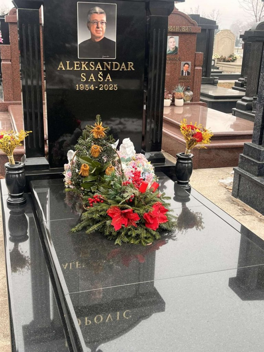 Kako se može videti u galeriji iznad teksta, na grobu su novi venci i suze, među kojima je i jedna posebna, praznična, koja simbolizuje večnu povezanost porodice sa Sašom Popovićem.