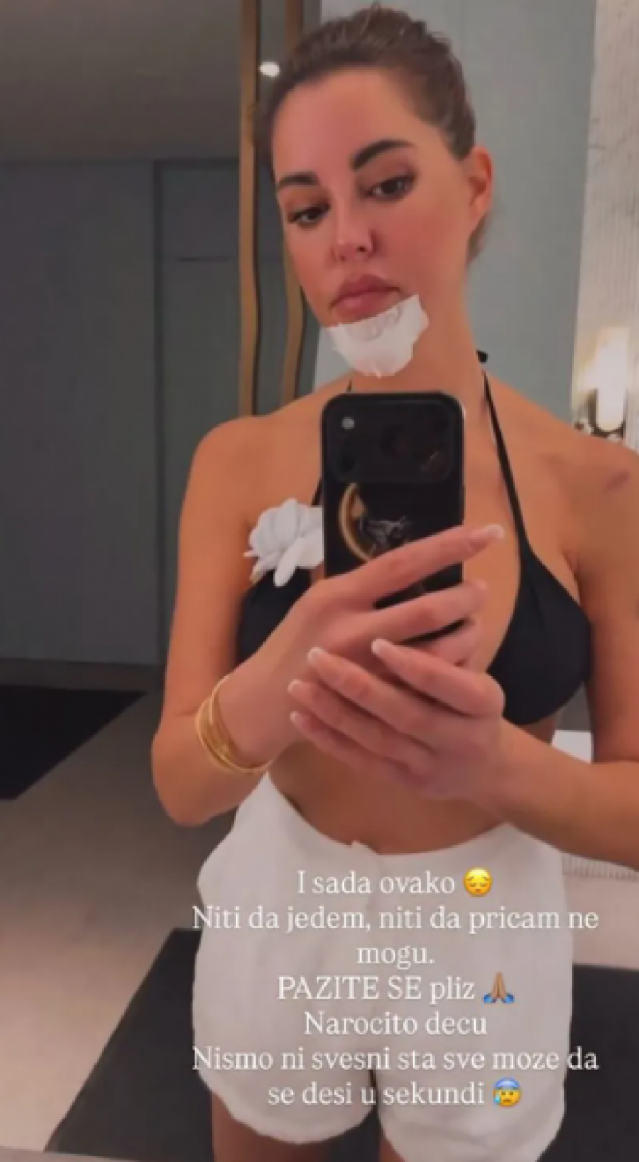 Influenserka je potom podelila i uznemirujuće fotografije povreda, želeći da skrene pažnju javnosti na opasnosti koje vrebaju u saobraćaju, posebno kada je u pitanju vožnja skutera. Kako je istakla, dovoljan je samo trenutak nepažnje da se dogodi ozbiljna nesreća, s teškim posledicama.