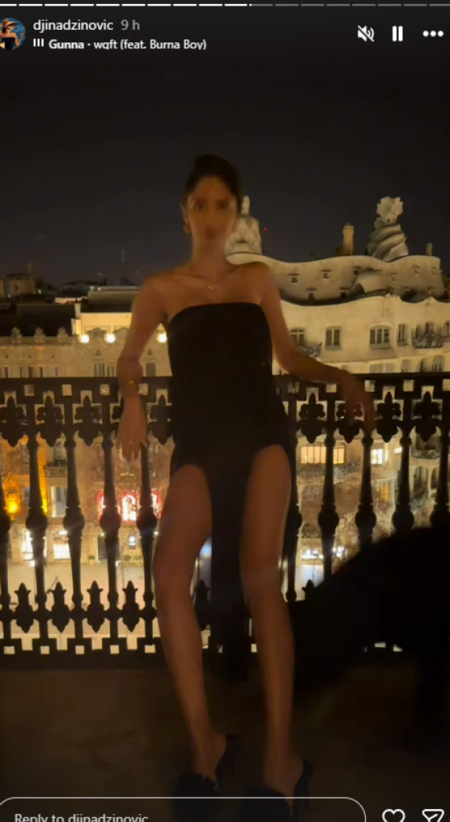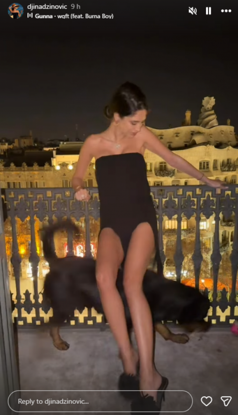 Đina Džinović, ćerka poznatog pevača Harisa Džinovića, ponovo je na meti javnosti, ali ovog puta zbog svog odabira odevne kombinacije. U izazovnoj crnoj haljini sa šlicem koji se penje gotovo do kuka, Đina je pozirala samouvereno na terasi.