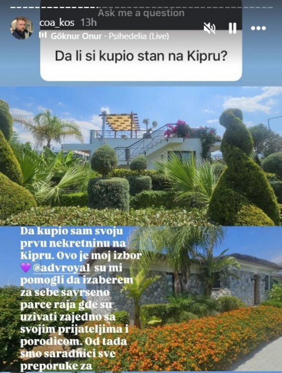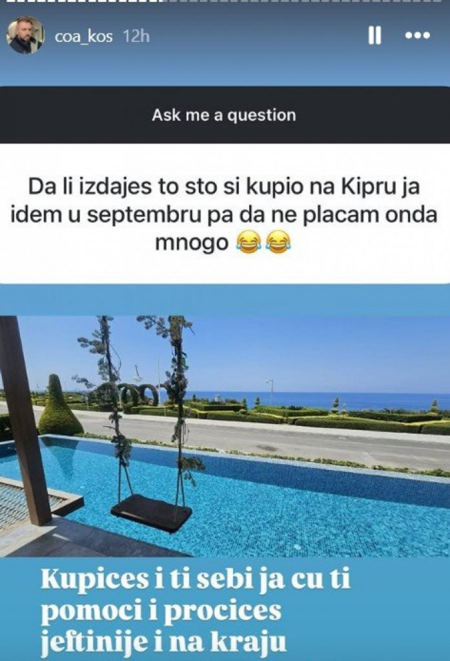 Aleksandar Kos, cimer političara Čedomira Jovanovića, nedavno je podelio uzbudljive vesti o kupovini svoje prve kuće na Kipru. Ova nekretnina, smeštena tik uz more, deo je luksuznog kompleksa koji obećava savršeno mesto za odmor.