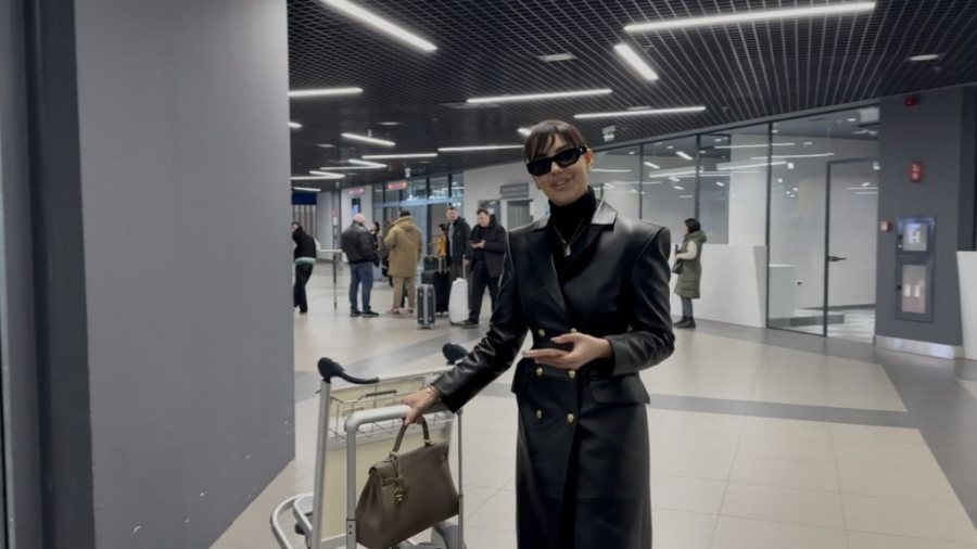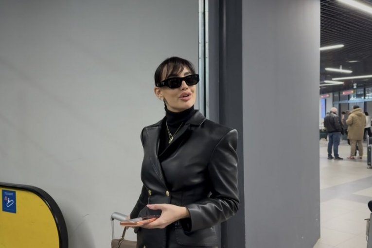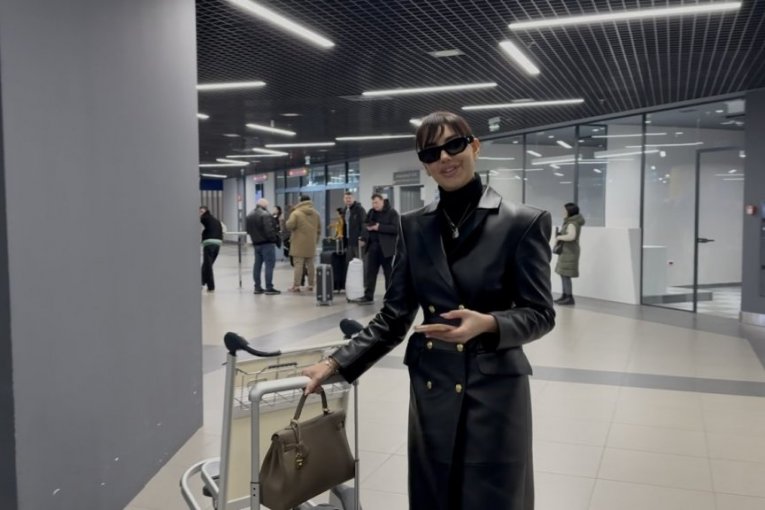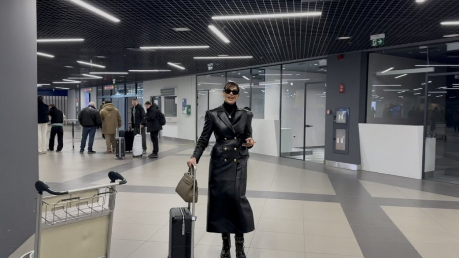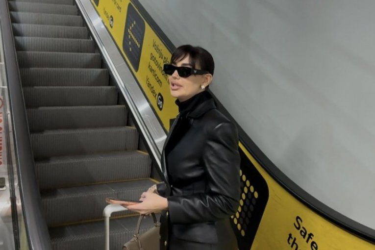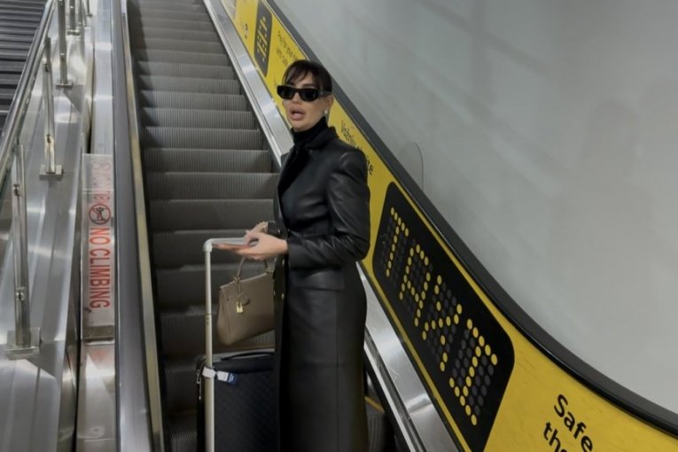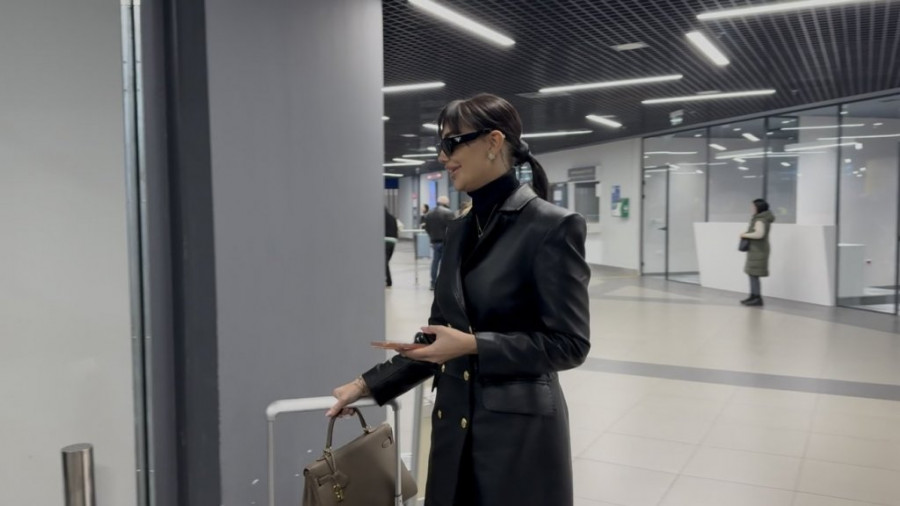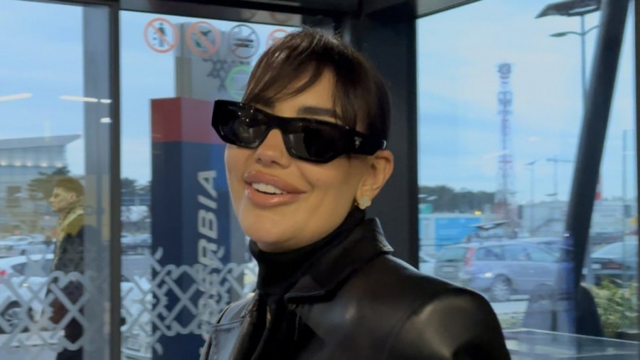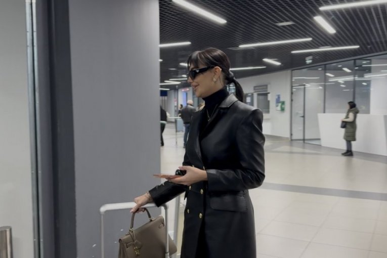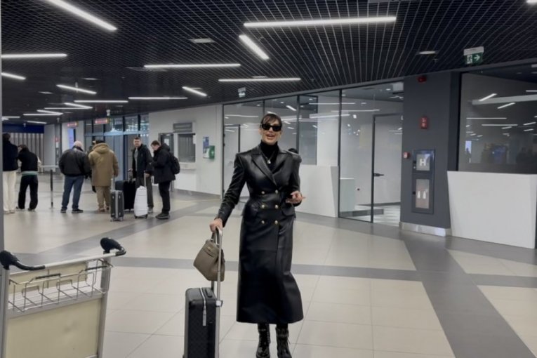 Na aerodromu, Katarina se pojavila u svom prepoznatljivom stilu, nosila je crni kožni mantil koji je dodatno istakao njenu vitku liniju.