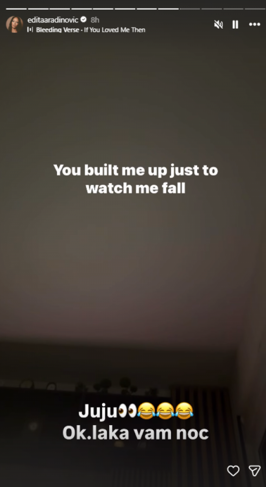 - Ju, ju. Okej. Laka vam noć - dodala je uz stihove "Sagradio si me samo da bi me gledao kako padam".
