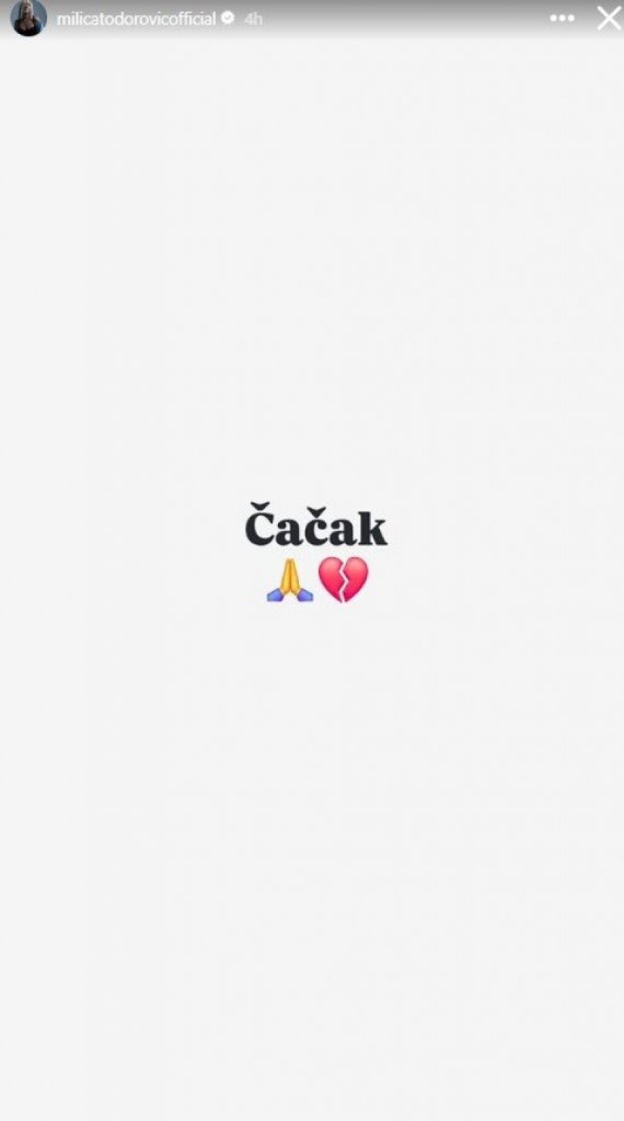 Pevačica Milica Todorović oglasila se na svom Instagram profilu nakon tragičnih događaja u Opštoj bolnici u Čačku, gde su u vrlo kratkom vremenskom roku preminula dva pacijenta. Mlada mama je kratko, ali jasno, izrazila svoje saosećanje objavom "Čačak" uz emotikon slomljenog srca, čime je jasno stavila do znanja koliko ju je pogodila situacija.