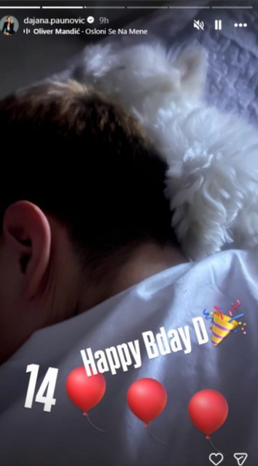 Dušan Jakšić, sin Dajane Paunović i Žike Jakšića, danas proslavlja svoj 14. rođendan. Ova posebna prilika nije mogla da prođe nezapaženo, a ponosna majka Dajana oglasila se povodom toga na društvenim mrežama. Na svom Instagram profilu, podelila je emotivnu fotografiju svog sina dok spava, uz srdačnu poruku: