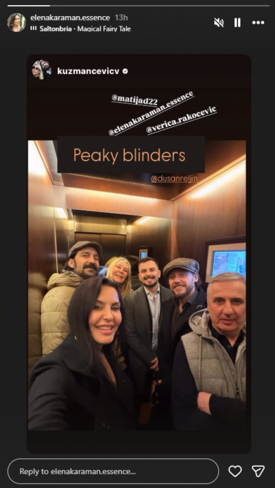 Nakon proslave, Veljko je na svom Instagramu podelio fotografiju iz lifta, na kojoj se vidi Elena, njen bivši suprug Andrija Drašković, njen dečko Dušan, kao i Verica Rakočević, što je izazvalo brojne reakcije.