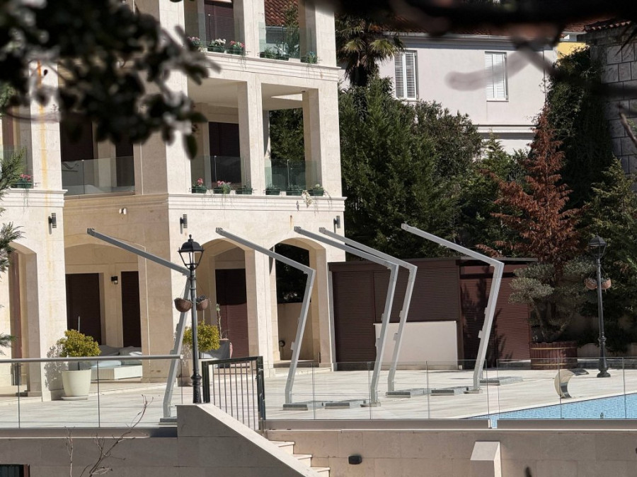 U vrtu je posađeno i nekoliko afričkih palmi, od kojih svaka navodno košta čak 21.000 evra, dok se u centralnom delu nalazi prostrani “safirni” bazen sa pogledom na Jadransko more.