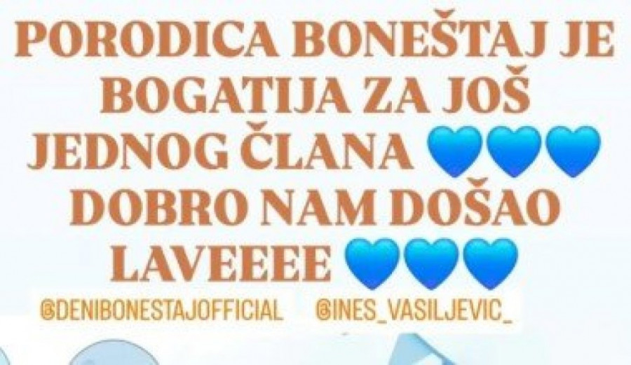 Pevač Deni Boneštaj danas je doživeo poseban trenutak u svom životu, jer je njegova supruga Ines donela na svet šesto dete. Porodica je postala bogatija za još jednog dečaka, a ponosni tata mu je dao ime Lav. Deni je na društvenim mrežama s ponosom objavio: "Dobrodošao Lave moj, hvala ženo moja." Ovaj događaj je izazvao brojne čestitke i lepe želje na društvenim mrežama, pokazujući koliko su njegovi obožavaoci srećni zbog novog člana porodice.