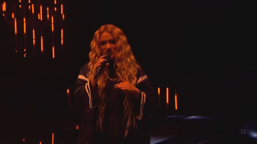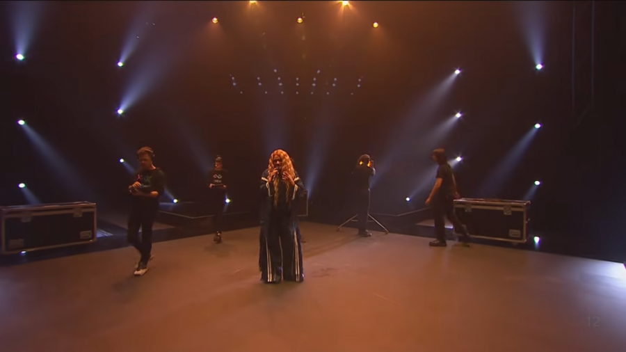 21.15 - Druga je na scenu izašla Lores, čiji je deo pesme na engleskom jeziku. Njena nestvarna lepota ostavila je sve bez teksta