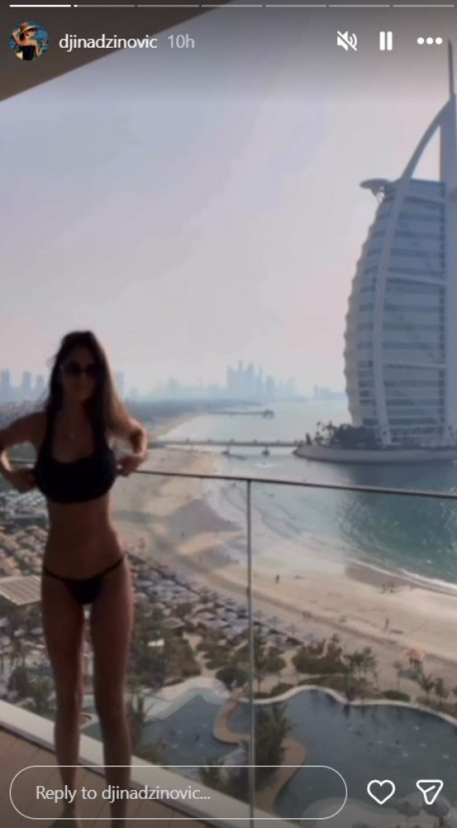 Na snimku koji je objavila, Đina je pokazala svoje izvajano telo, ali i to kako izgleda jedan njen trening. Ovaj trenutak opuštanja i luksuza dolazi u suprotnosti sa situacijom u kojoj se nalazi region. Pogled sa terase, koji je snimila, otkriva da se nalazi samo nekoliko metara od Burdž Al Araba, što dodatno naglašava veličinu i značaj ovog zdanja.