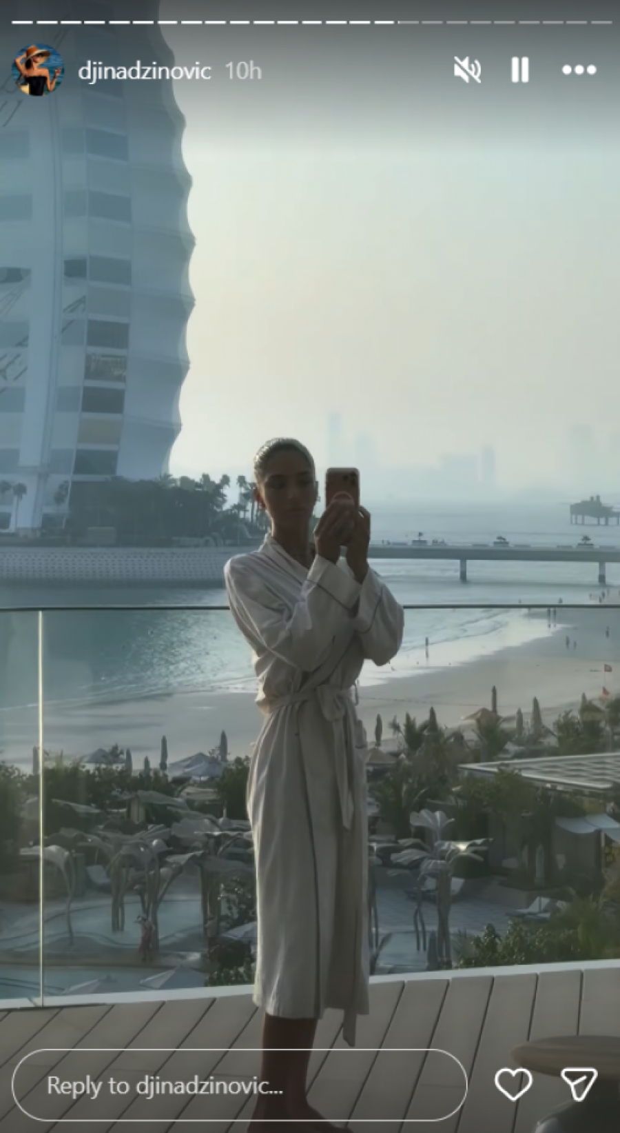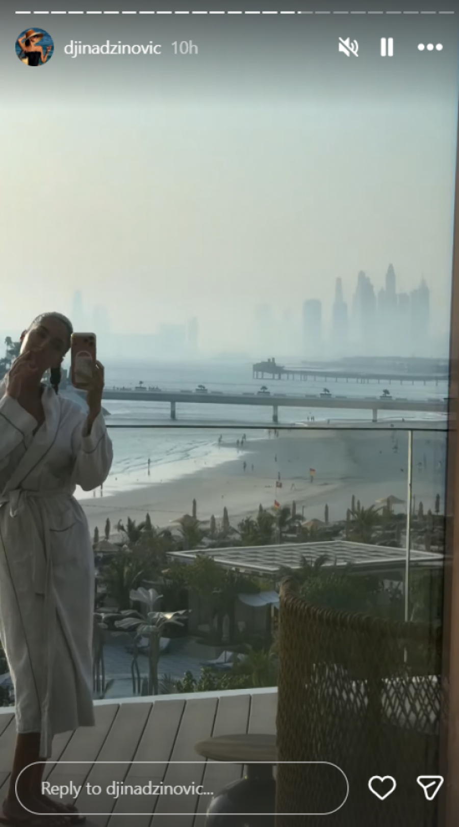 Na Instagram profilu Đina je objavila niz snimaka i fotografija koje ilustruju njen boravak u Dubaiju. Otišla je na večeru u jedan od ekskluzivnih restorana, a nakon toga se opustila u obližnjem kafiću, uživajući u koktelima. Ono što je zanimljivo jeste da je, uprkos stresnom periodu koji je prethodio njenom putovanju, odlučila da se posveti nezi lica i svojoj skin ker rutini, čak i na odmoru. Podelila je trenutak kada je nosila masku za lice dok je uživala u tretmanima u frizerskom salonu, što ukazuje na njenu posvećenost ličnoj nezi.