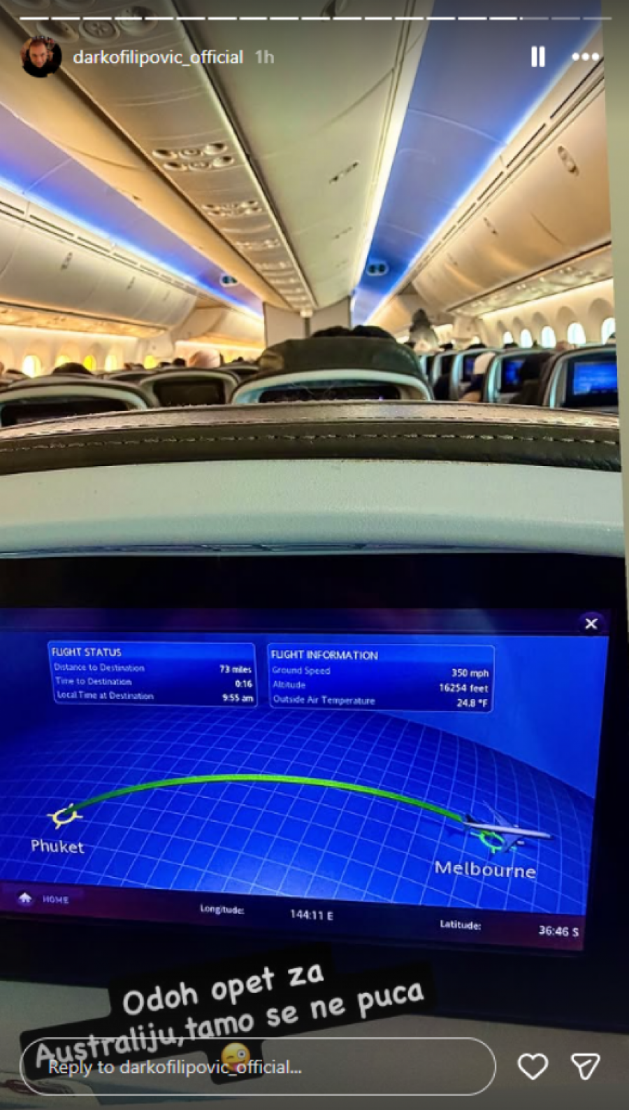 Pevač Darko Filipović posle dužeg boravka u Tajlandu napustio je ovu azijsku destinaciju i zaputio se ka Australiji. Na društvenim mrežama oglasio se kratkom porukom u kojoj je kroz šalu prokomentarisao aktuelnu situaciju u svetu.