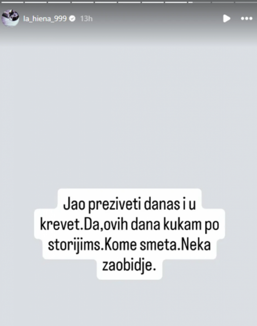 - Jao preživeti danas i u krevet. Da, ovih dana kukam po storijima. Kome smeta neka zaobiđe - dodala je.