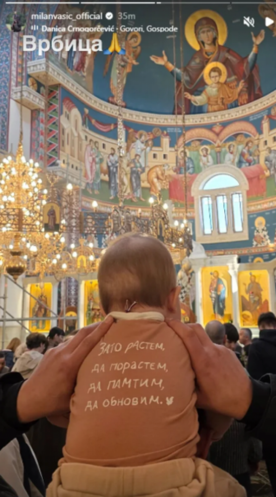 Za glumca Milana Vasića, koji je u petoj deceniji života nedavno postao otac, ovogodišnja Vrbica bila je posebno emotivna. Milan je prvi put svog sina poveo u crkvu za Vrbicu, držeći ga na ramenima dok su zajedno učestvovali u obeležavanju praznika. Bogato ukrašeni hram sa freskama, ikonama i raskošnim lusterima dodatno je istakao svečanost trenutka, a mala poruka na bebinoj odeći – "Zato rastem, da porastem, da pamtim, da obnovim" – simbolično je povezala duh praznika sa novim životom i nadom.