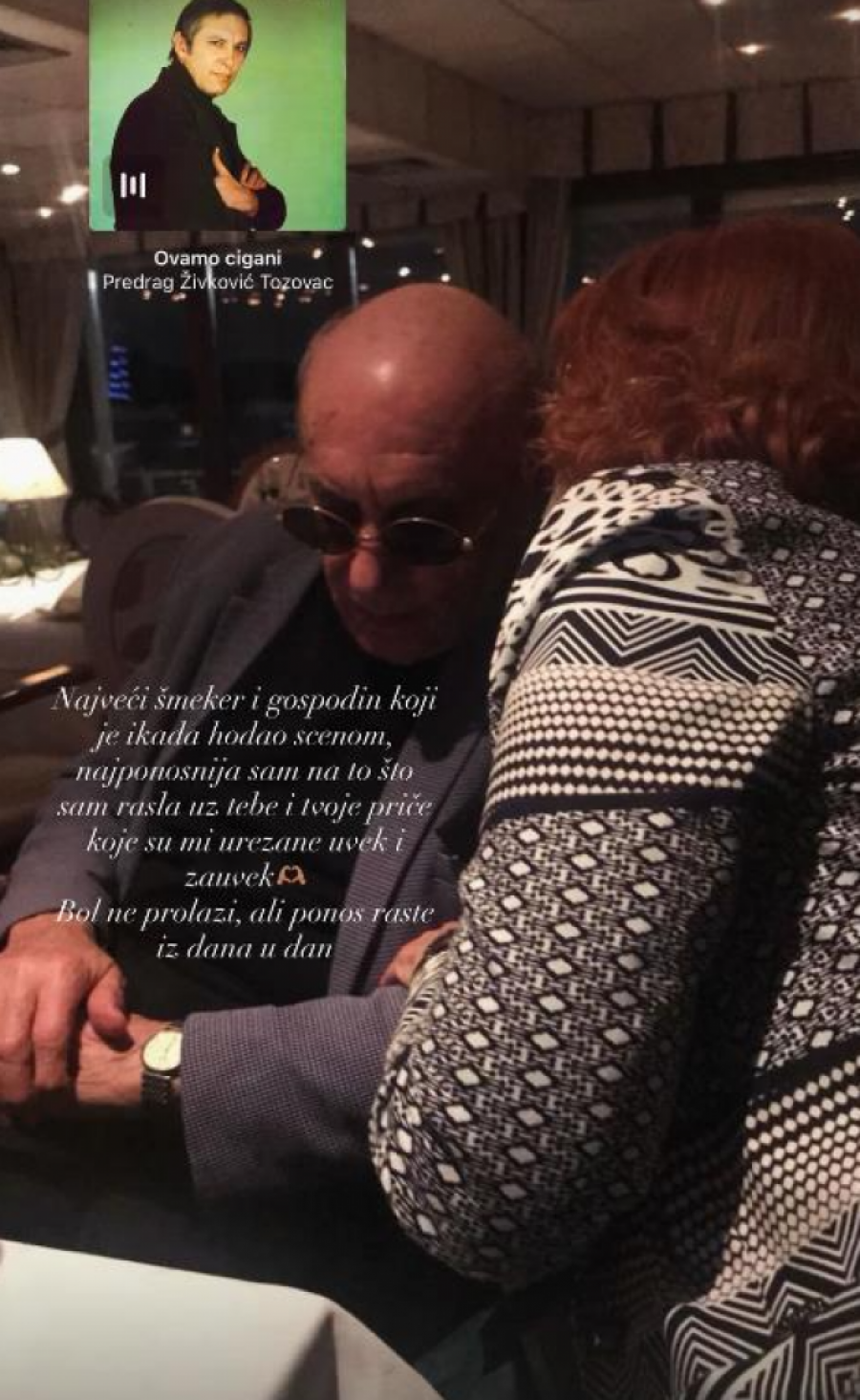 - Najveći šmeker i gospodin koji je ikada hodao scenom, najponosnija sam na to što sam rasla uz tebe i tvoje priče koje su mi urezane uvek i zauvek. Bol ne prolazi, ali ponos raste iz dana u dan. Za sve manje lepo i ono najlepše što je bilo i što će biti, nedostaješ. Volim te - stajalo je u njenoj objavi na Instagramu.