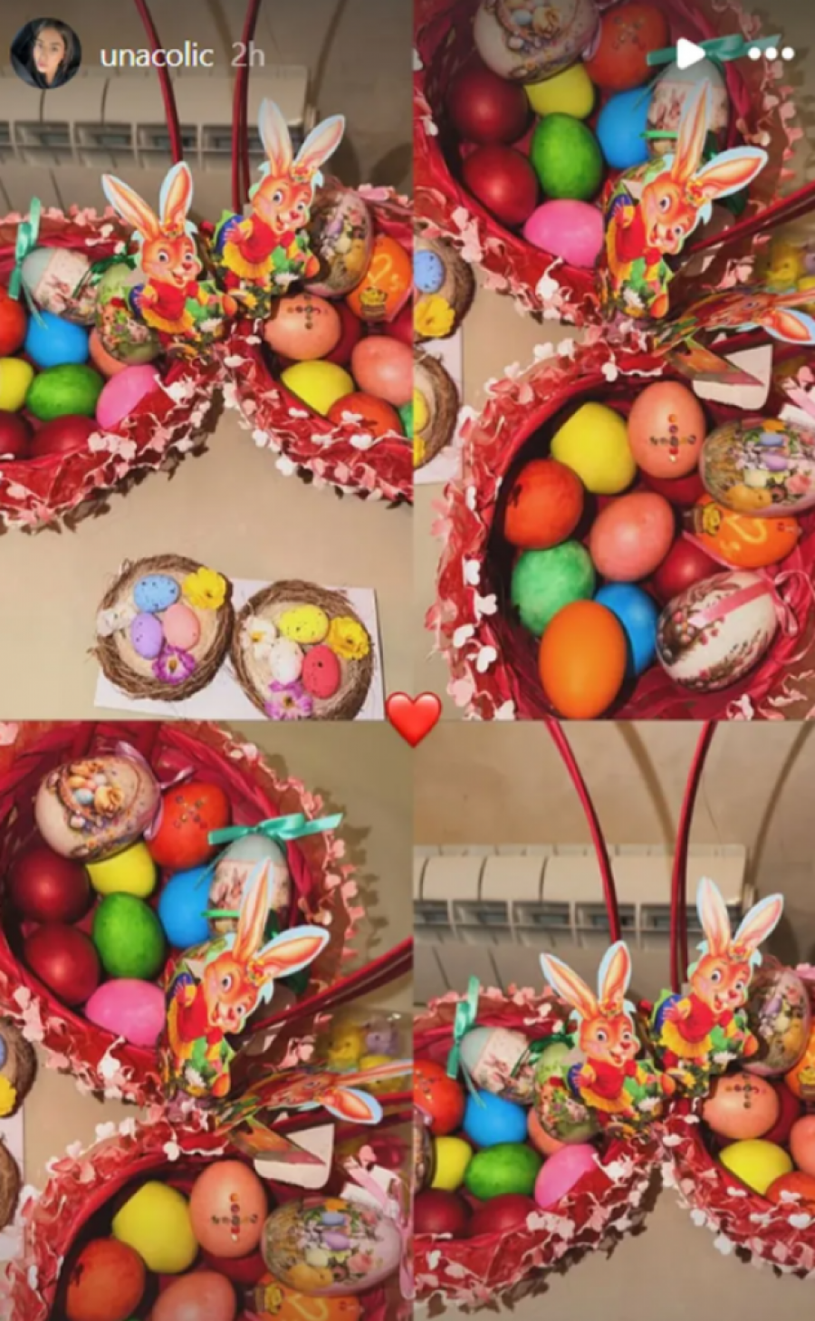 Posebnu pažnju privukla je objava iz doma velike muzičke zvezde Zdravka Čolića, gde je njegova starija ćerka Una Čolić podelila delić praznične atmosfere. Na fotografijama koje je objavila vide se korpe prepune šarenih jaja, ukrašenih cirkonima i motivima poput zekica, što celokupnom prizoru daje bajkovit izgled.