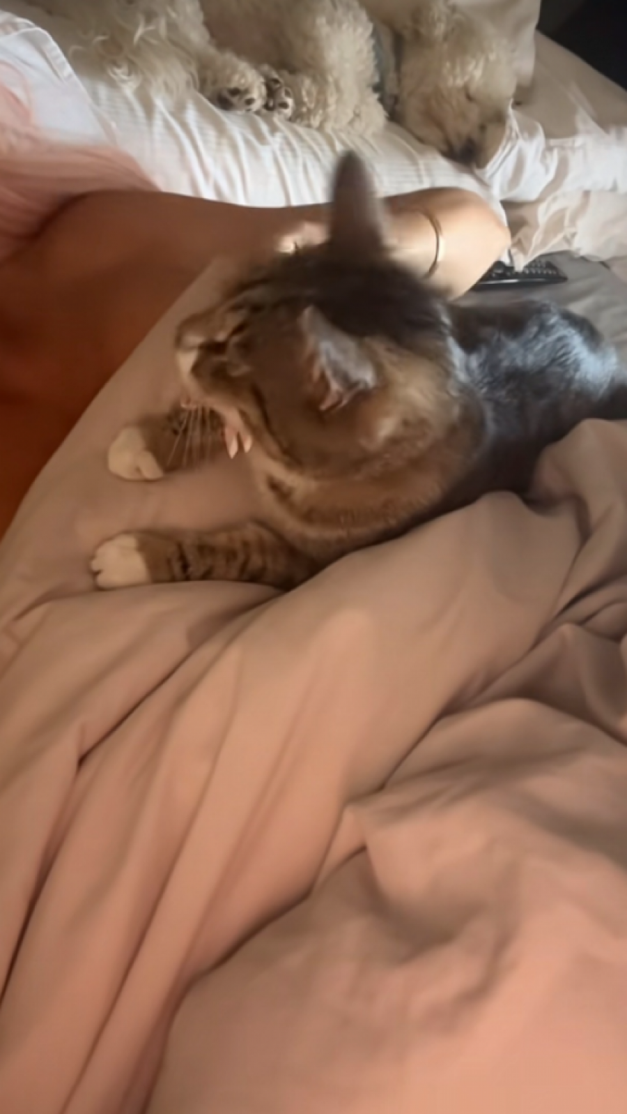 Kako se jasno vidi na snimku, Karleuša potpuno naga, bez trunke veša, leži u svom krevetu rano ujutru, a onda se požalila pratiocima kroz šta prolazi i zbog čega je preumorna.