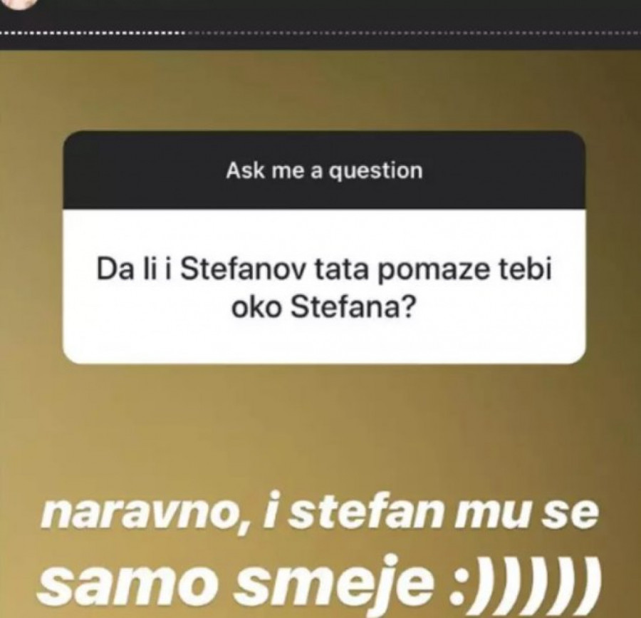 Posle duge medijske tišine, ona je sada odlučila da odgovori na pitanja svojim pratiocima na instagramu u okviru nove opcije, a dvoje je zanimalo i šta je sa Stefanovim ocem.