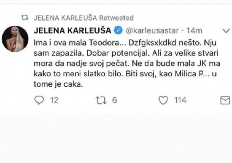 Da Teodora ne mari za to, govori i činjenica da i dalje radi istu stvar. Naime, pevačica se pre nekoliko dana pojavila u jednom crnogorskom klubu u istom kostimu u kom se i Jelena pojavila par dana pre Džehverovićeve.