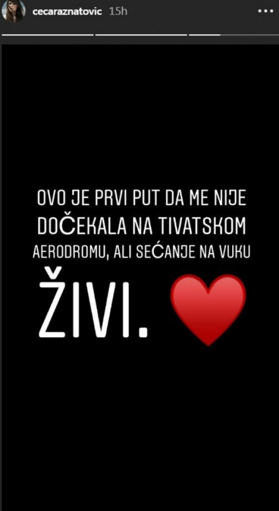 - Ovo je prvi put da me nije dočekala na tivatskom aerodromu, ali sećanje na Vuku živi - poručila je Ceca.