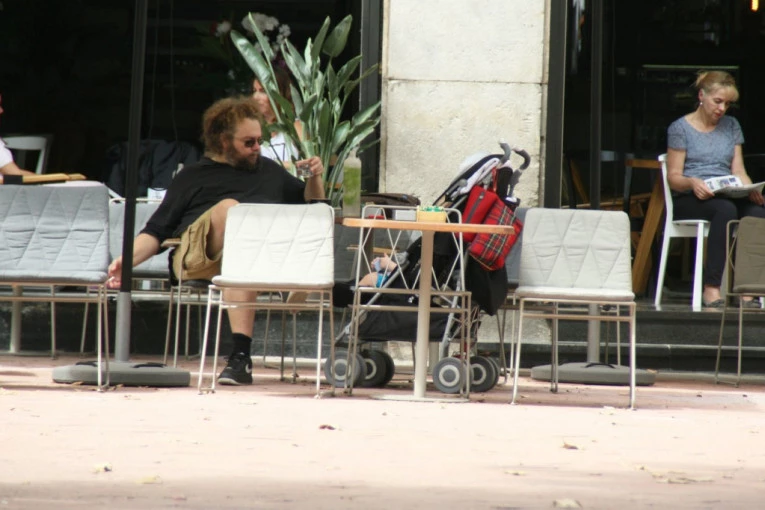 Kona smo zatekli u šetnji sa sinom kog je nedavno dobio sa suprugom Milicom, a njih dvojica najpre su seli u jedan kafić na piće. Uzorni otac je najpre nahranio sina, a zatim popio piće.