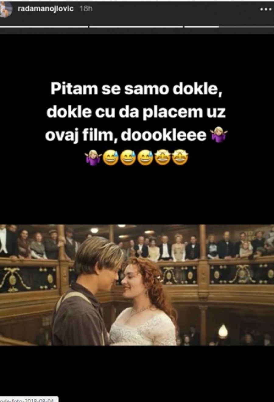 - Pitam se dokle, dokle ću da plačem uz ovaj film, dokle... ? - zapitala se Rada uz fotografiju scene iz "Titanika".
