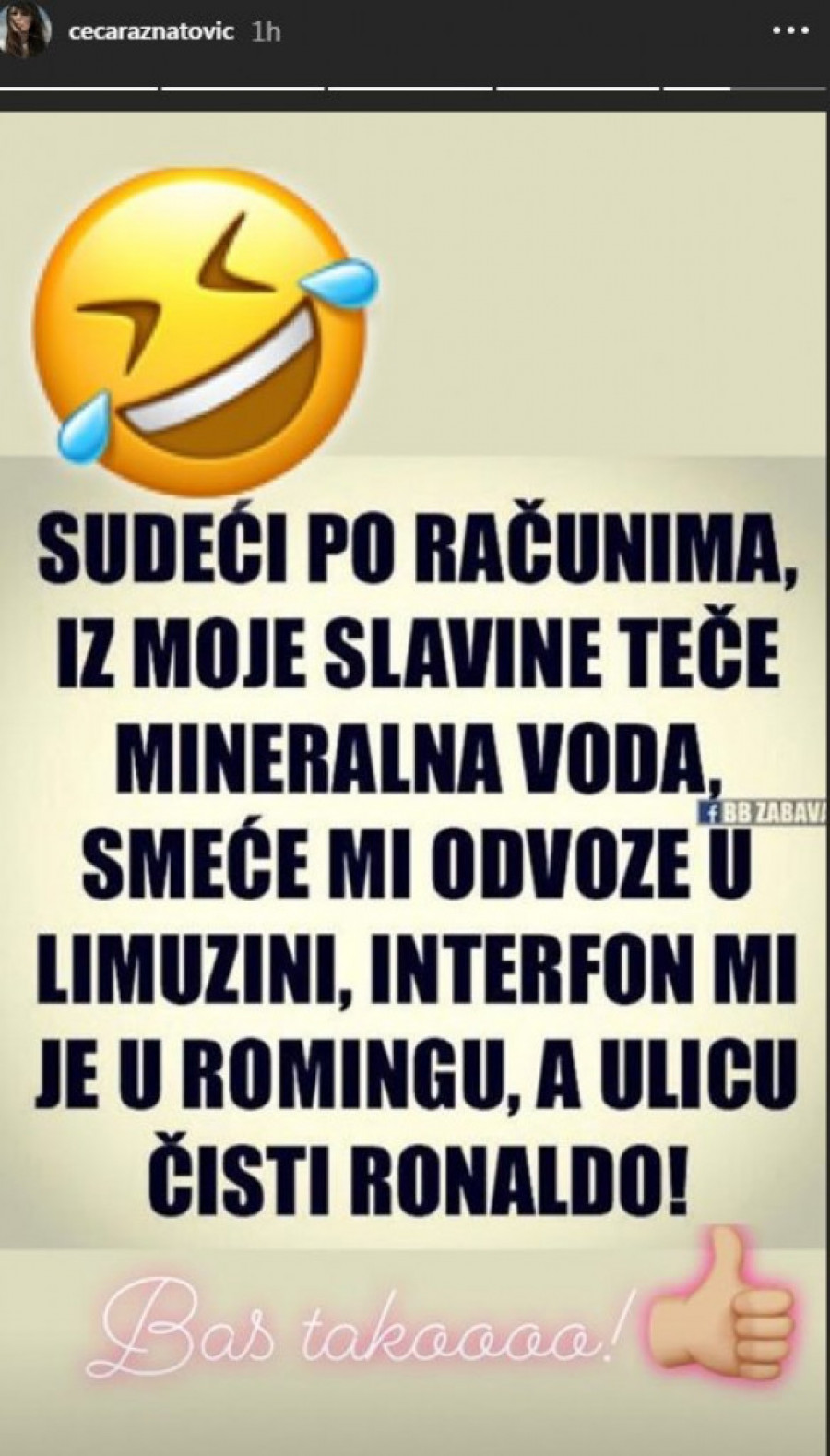 Ceca se danas našalila na svoj račun i objavila fotografiju na Instagram profilu, te pokrenula lavinu smeha među pratiocima.