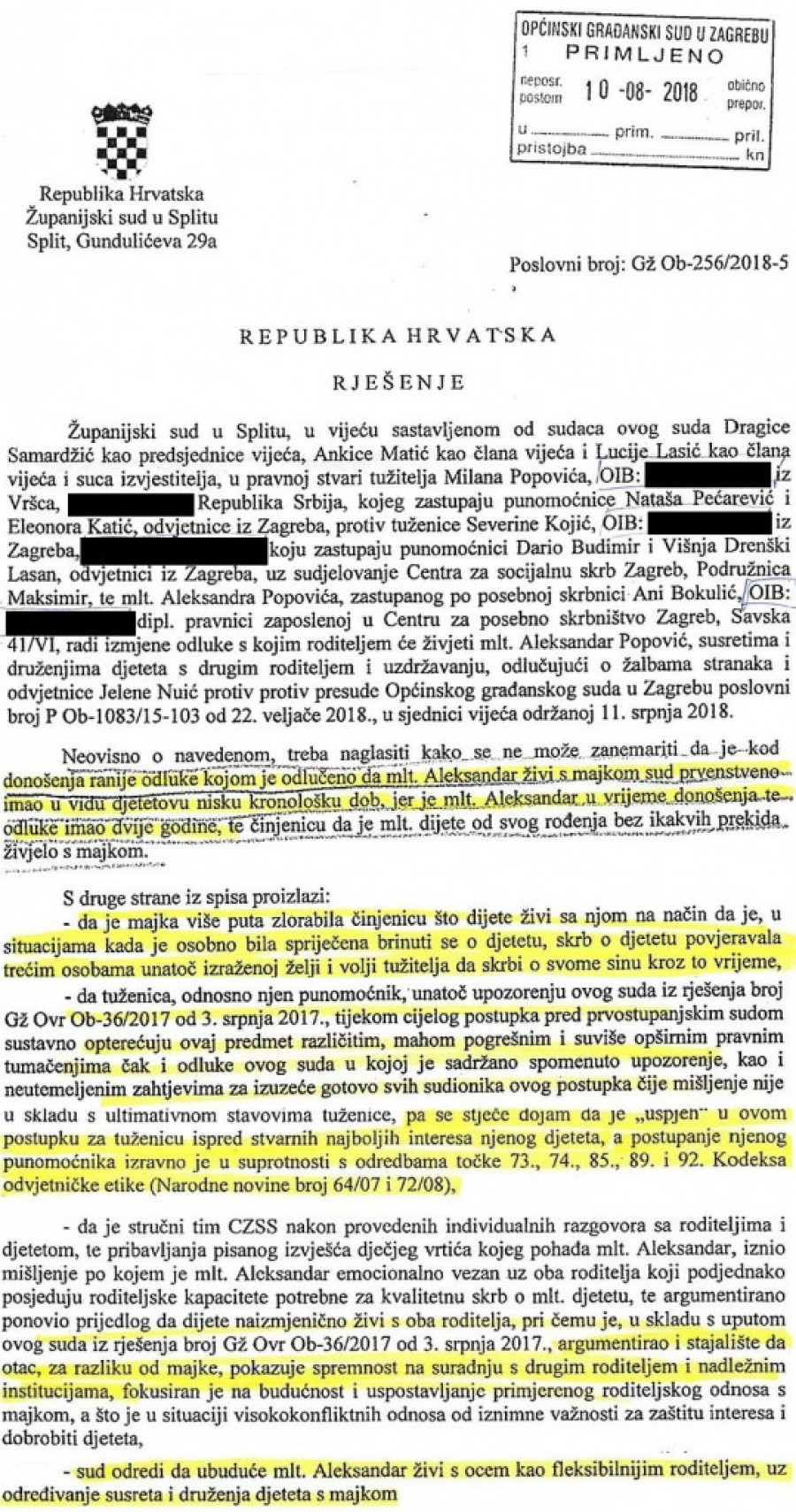 DOKAZ: PRESUDA HRVATSKOG SUDA KOJOM JE SEVERINI ODUZETO STARATELJSTVO NAD SINOM