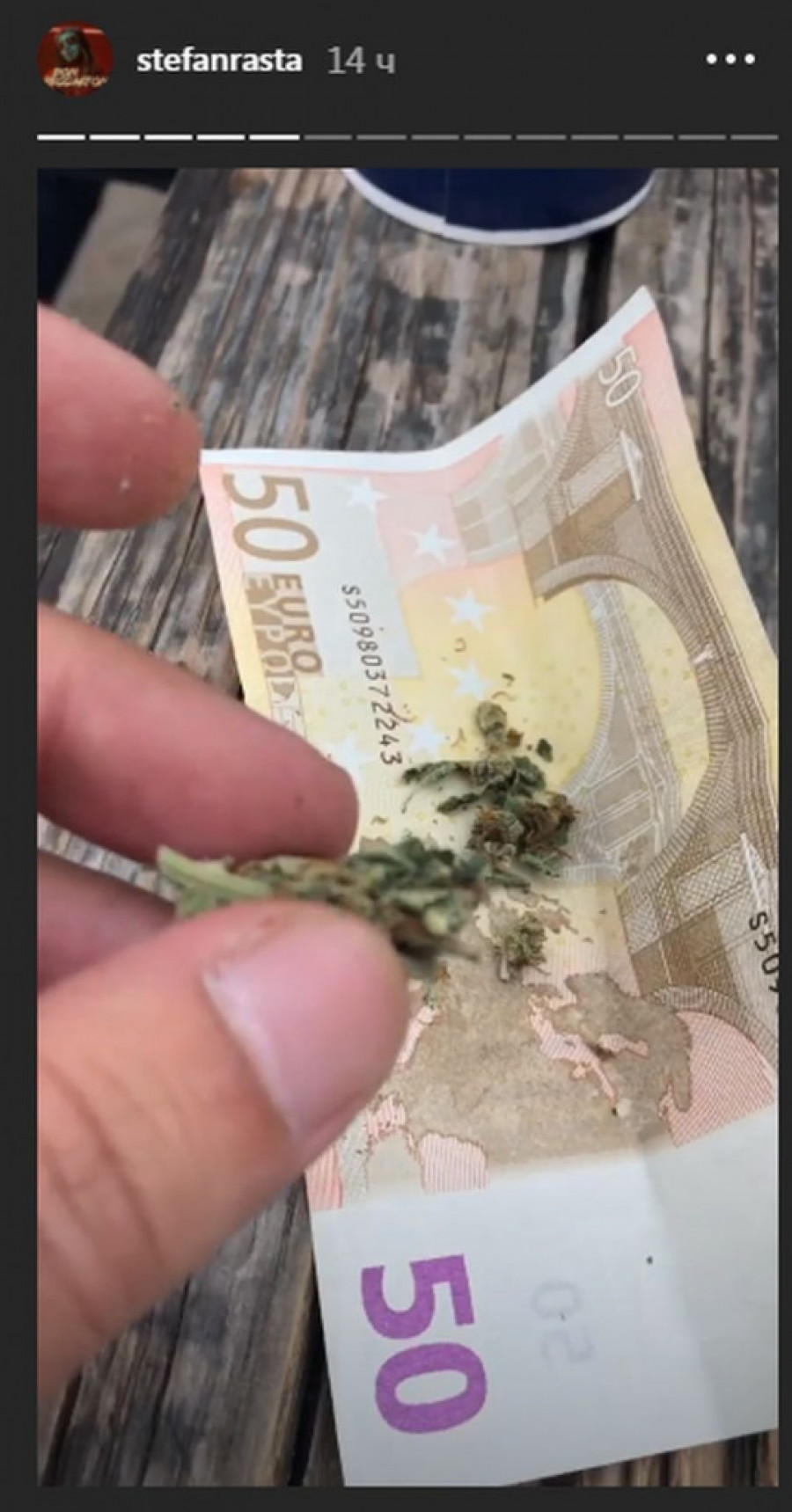 Foto: instagram.com/stefanrastaNovina u njegovom promovisanju narkotika ovoga puta je što je odlučio da popularnu "vutru" uvije u novčanicu od 50 evra.