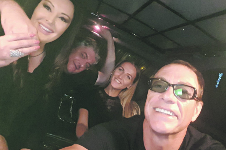 - Ovde su najbolji, Žan Klod i društvo, puno vas volimo i ljubimo - rekla je folk diva, na šta je glumac odgovorio da mu je drago što je došla Tonijevim privatnim avionom iz Srbije, gde je boravila nekoliko dana povodom rođendana kod svog prijatelja i saradnika.