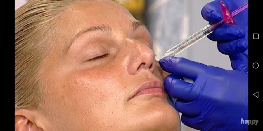 Foto: printscreen/TVHappySvi koji su pre dva dana gledali emisiju "Posle ručka" na kanalu Hepi televizije imali su prilike da vide kako na delu izgleda kada doktorka specijalista estetske medicine ulepšava žensko lice.