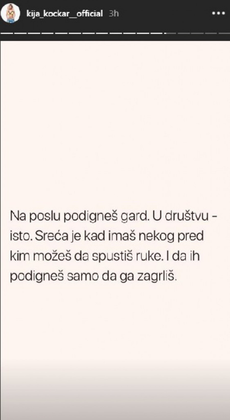 - Na poslu podigneš gard. U društvu - isto. Sreća je kad imaš nekoga pred kim možeš da spustiš ruke. I da ih podigneš samo da ga zagrliš - objavila je Kockarova na profilu na instagramu.