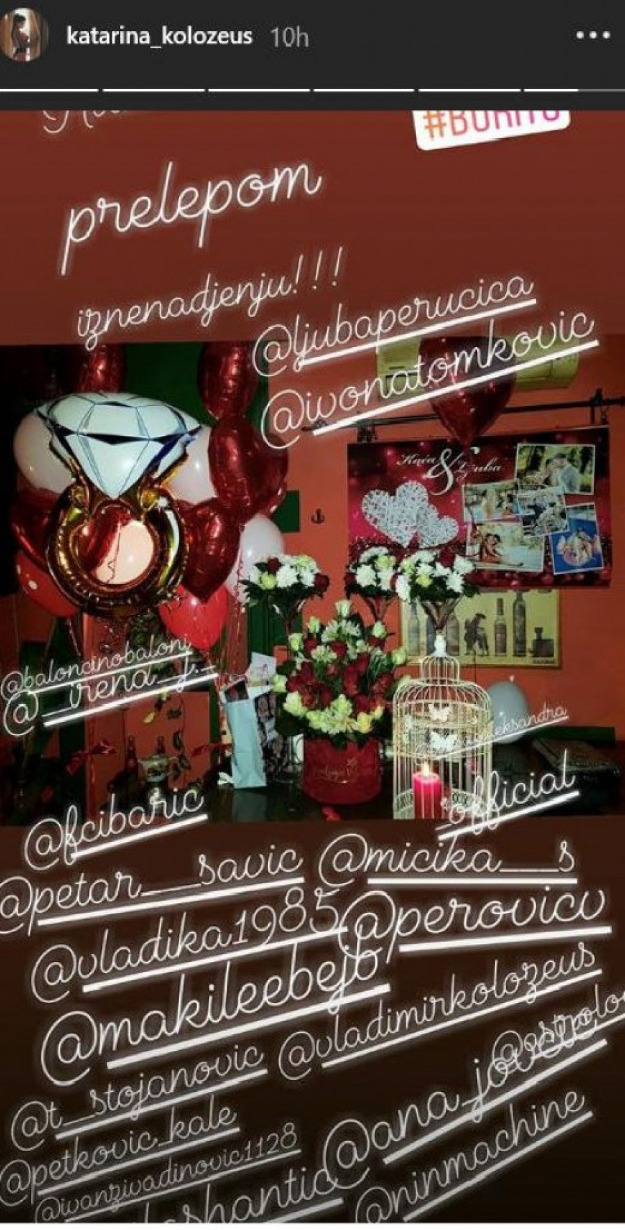 Katarina nije ni bila svesna šta joj se sprema, a iznenađenje je bilo potajno organizovano i samo određeni broj ljudi je znao. Proslava rođendana je organizovana u jednom restoranu u kom su Ljuba i Katatrina sa svojim prijateljima slavili do ranih jutarnjih časova.