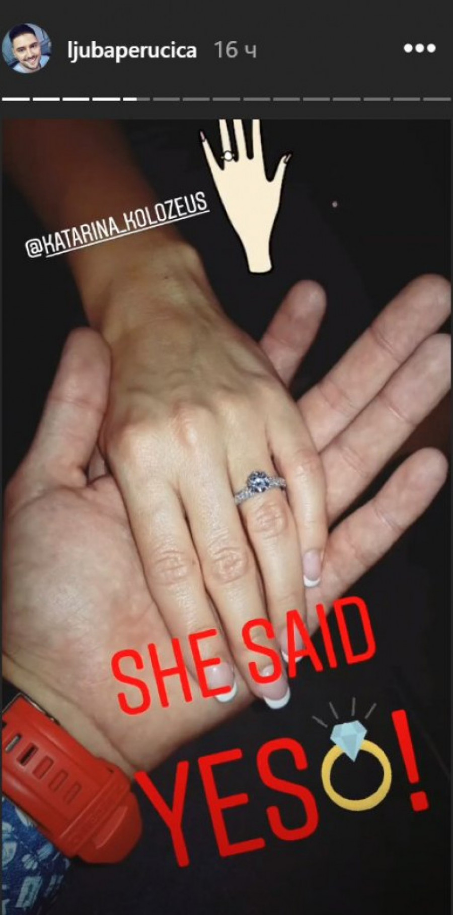 Zaprosio ju je pred članovima najuže porodice. Perućica se na Instagramu pohvalio kako je Katarina pristala da se uda za njega, a budući mladoženja se čak dohvatio i mikrofona i zapevao u to ime.
