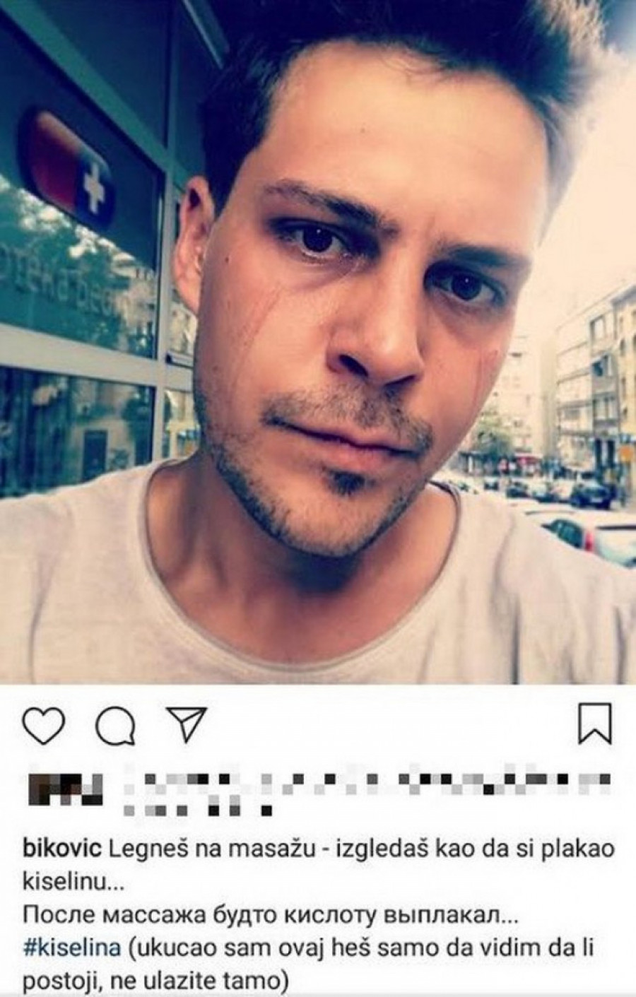 Foto: instagram.com/bikovicNaime, Miloš je objavio fotografiju nakon masaže gde se vidi da su mu krenule suze zbog efektnog tretmana kom je podvrgnut. A muške suze odmah su privukle njegove obožavateljke te mu je jedna uputila neočekivanu molbu: