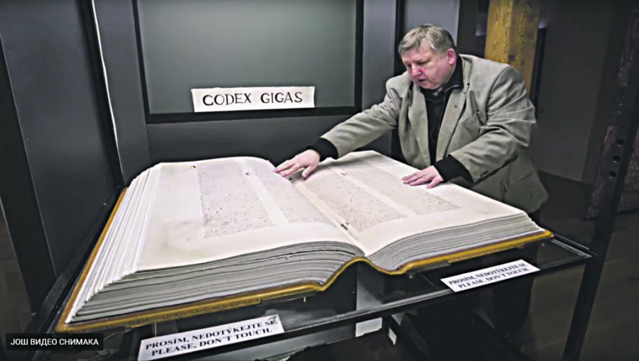 Foto: Promo fotoKodeks Gigas ili Džinovska knjiga najveći je i verovatno najčudniji rukopis na svetu. Knjiga napisana u prvoj polovini 13. veka u benediktanskom manastiru Podlažice u današnjoj Češkoj teži 74 kilograma i obimna je toliko da se tvrdi da je za pergament bilo potrebno 160 koža magaraca i teladi.